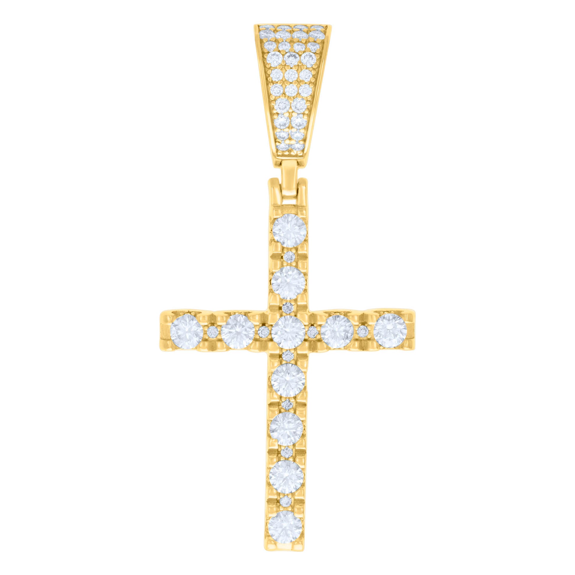 925 Sterling Silver Yellow-tone Unisex 2.04ct Moissanite Cross Religious Charm Pendant