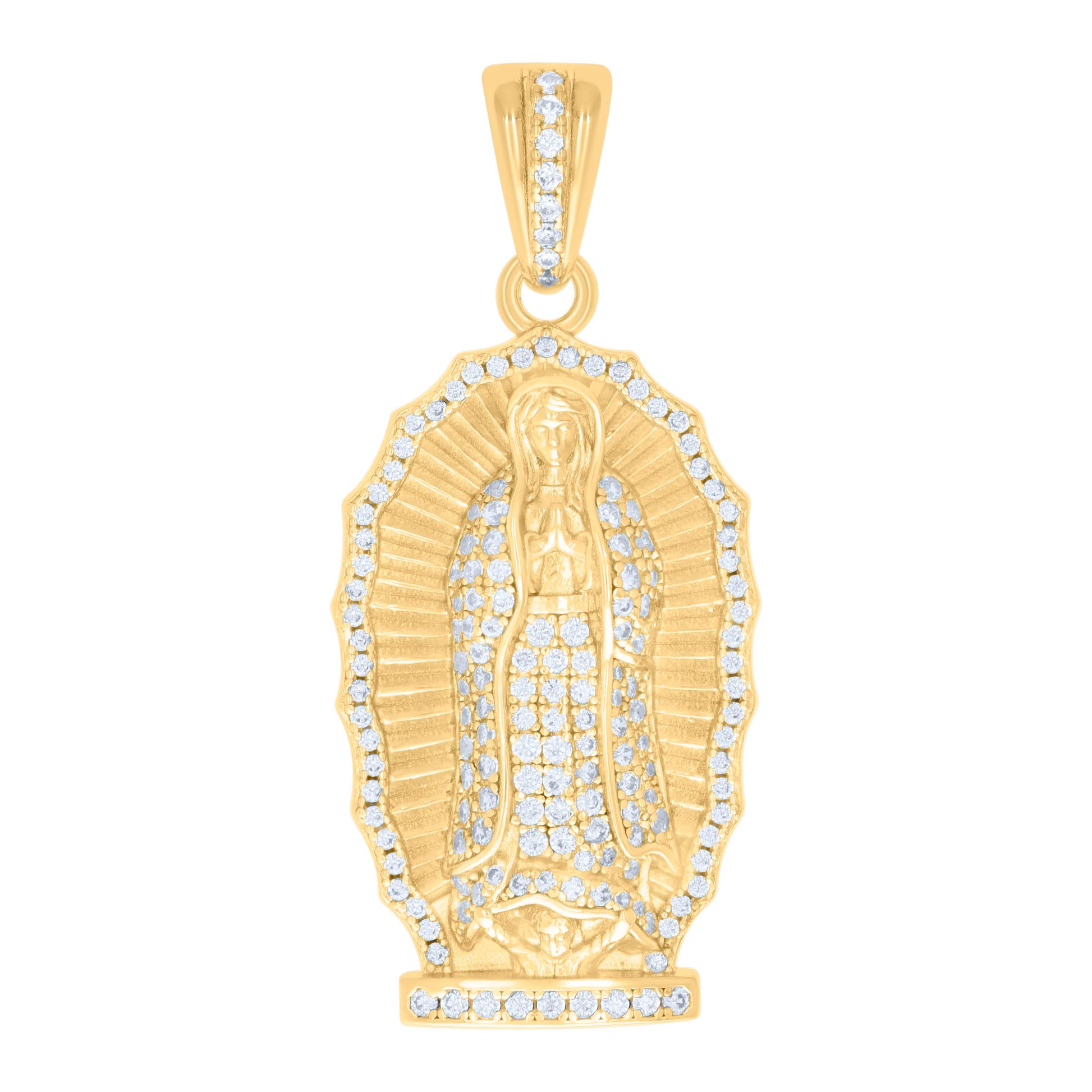 925 Sterling Silver Yellow-tone Mens 1.13ct Moissanite Guadalupe/Mother Marry Religious Pendant