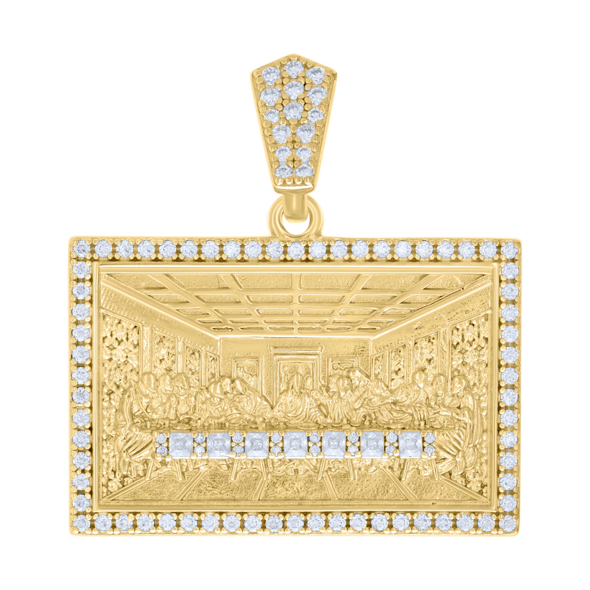 925 Sterling Silver Yellow-tone Mens Round 1.22ct Baguette 0.40ct Moissanite Last Supper Pendant