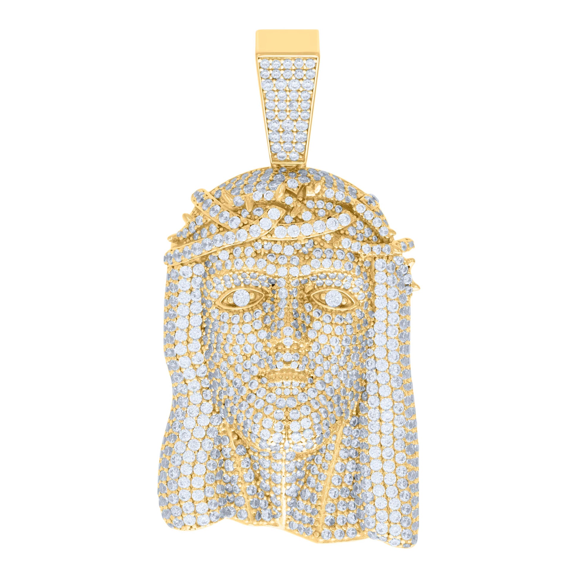 925 Sterling Silver Yellow Mens 8.77ct Moissanite Jesus Religious Charm Pendant