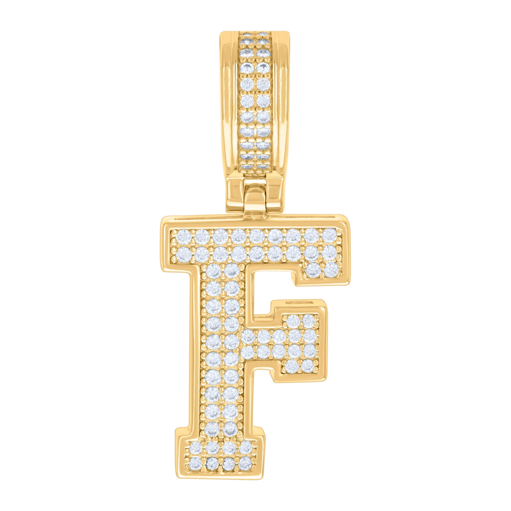 925 Sterling Silver Yellow-tone Unisex 0.59ct Moissanite Initial Alphabet F Charm Pendant