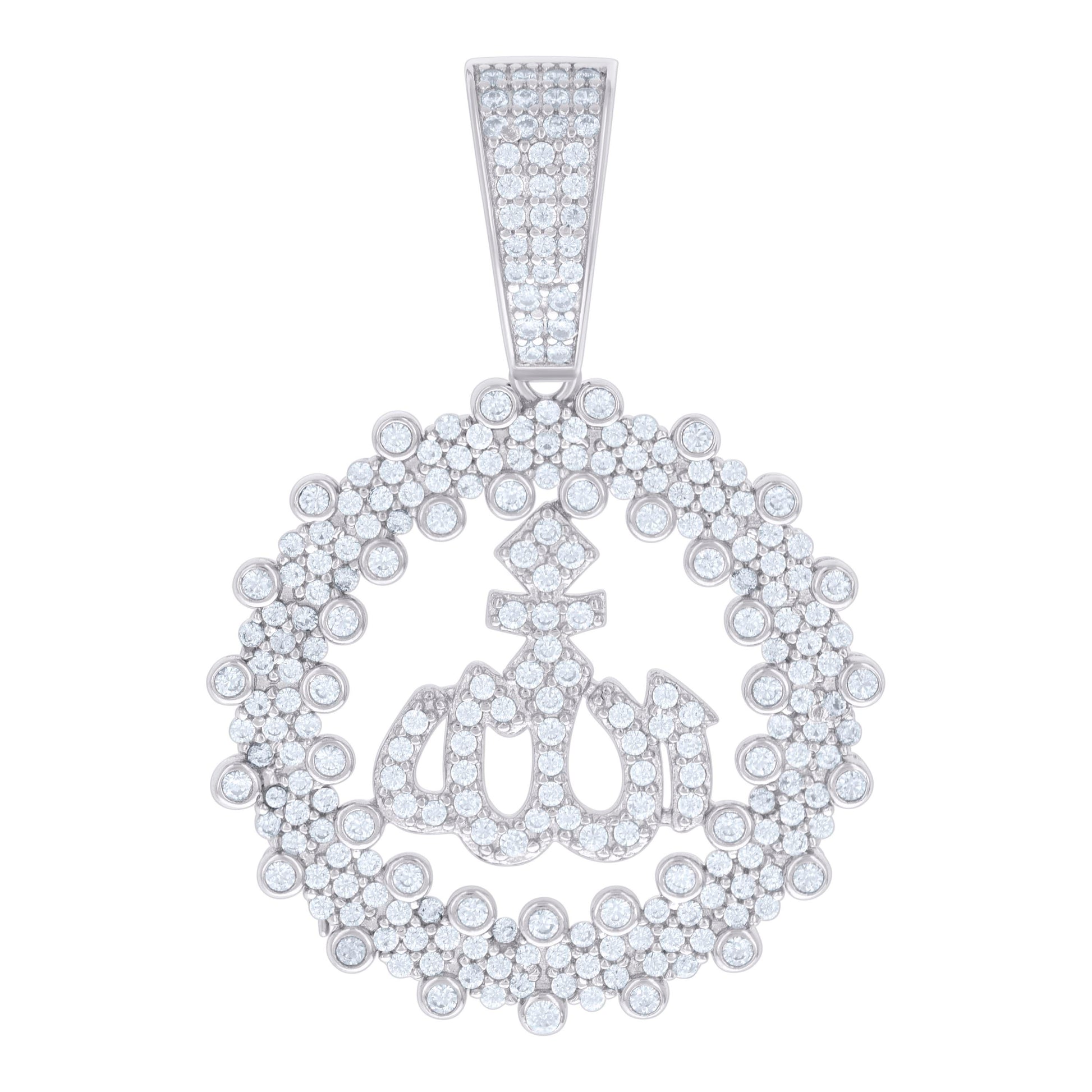 925 Sterling Silver Mens 1.88ct Moissanite ALLAH Symbol Religious Charm Pendant