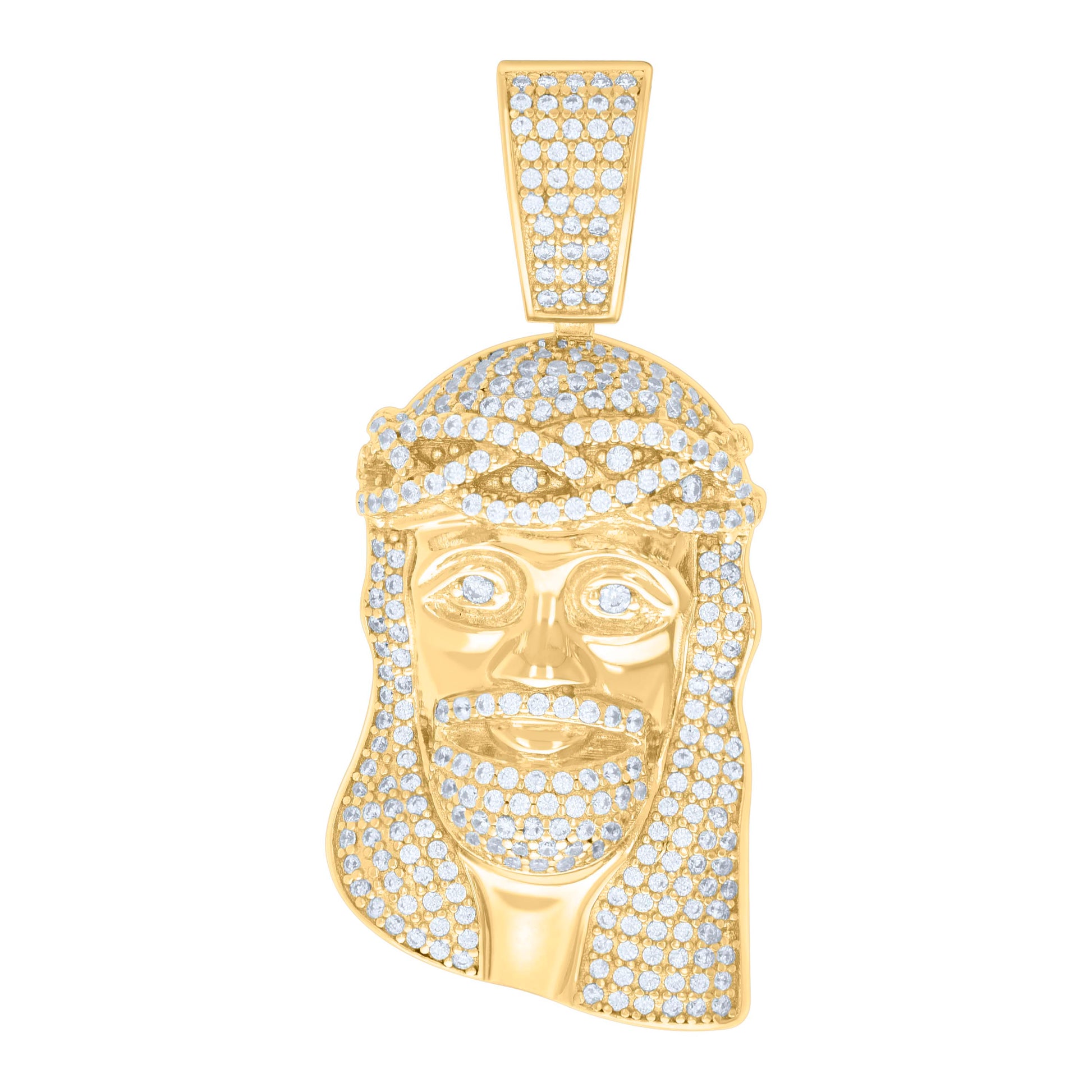 925 Sterling Silver Yellow-tone Mens 1.52ct Moissanite Jesus Religious Charm Pendant