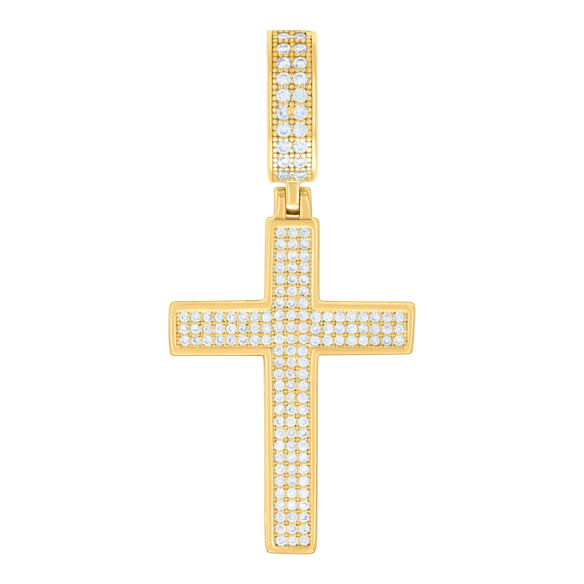 925 Sterling Silver Yellow-tone Mens 0.60ct Moissanite Cross Religious Charm Pendant