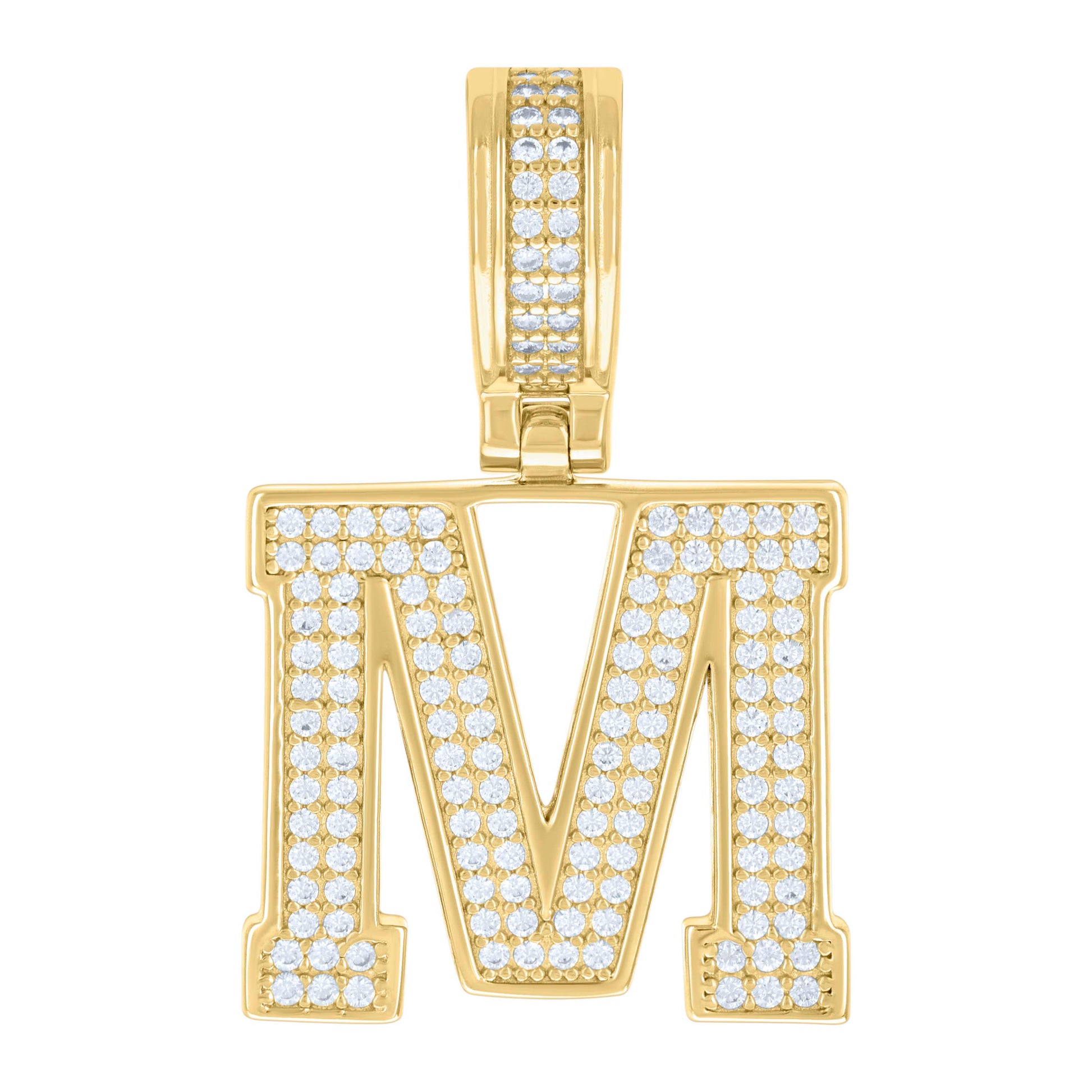 925 Sterling Silver Yellow-tone Unisex 0.78ct Moissanite Initial Alphabet M Charm Pendant