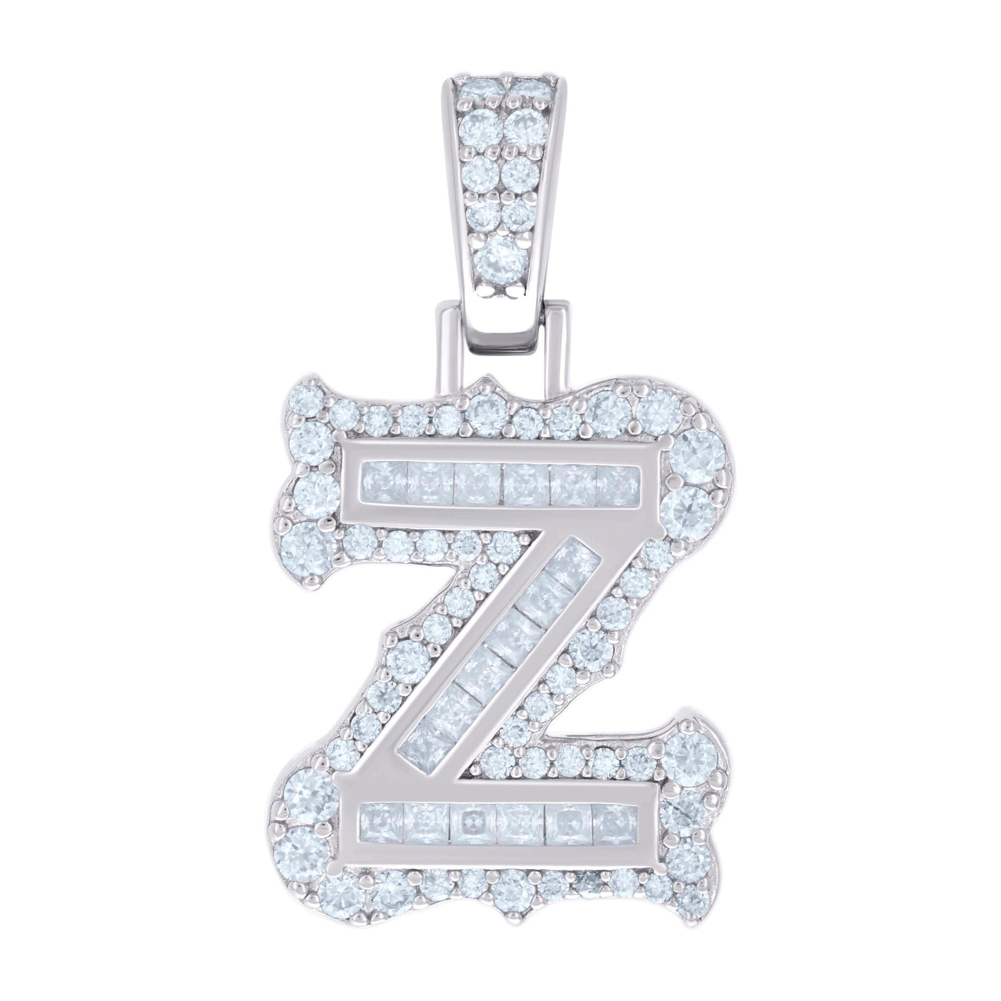 925 Sterling Silver Unisex Baguette Round Moissanite 0.70ct Initial Alphabet Z Charm Pendant