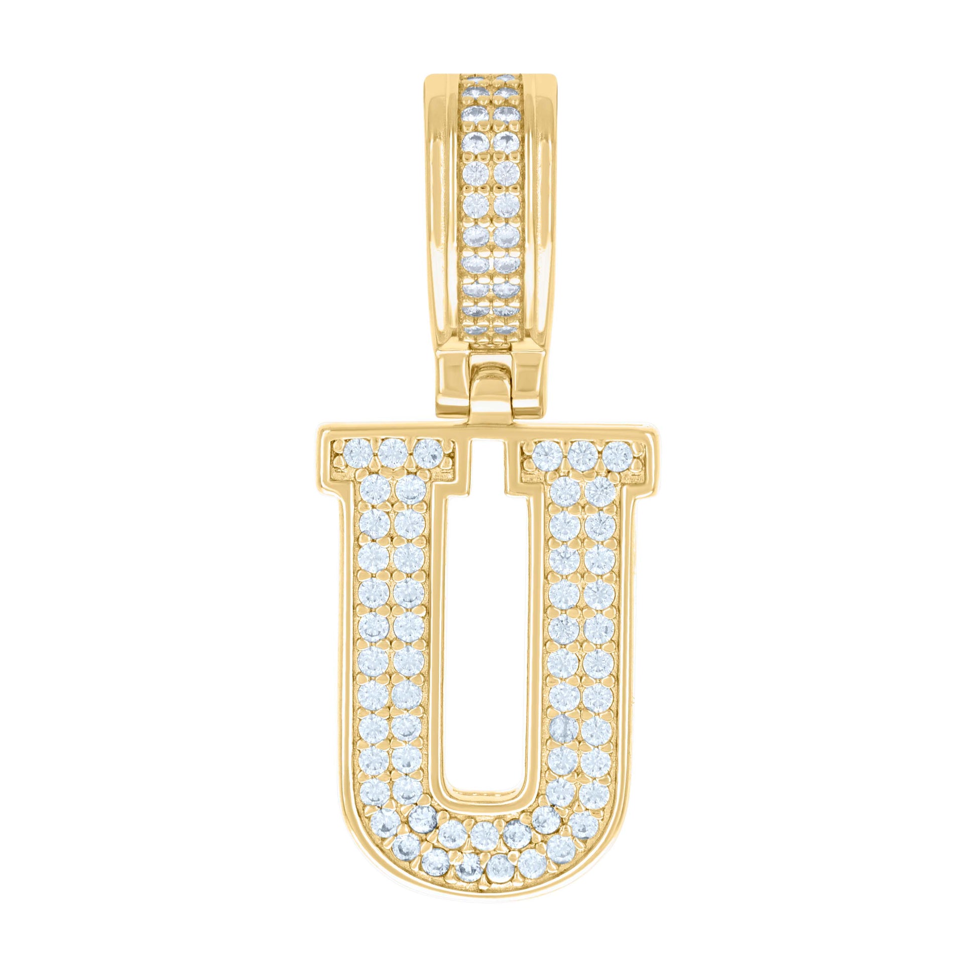 925 Sterling Silver Yellow-tone Unisex 0.61ct Moissanite Initial Alphabet U Charm Pendant