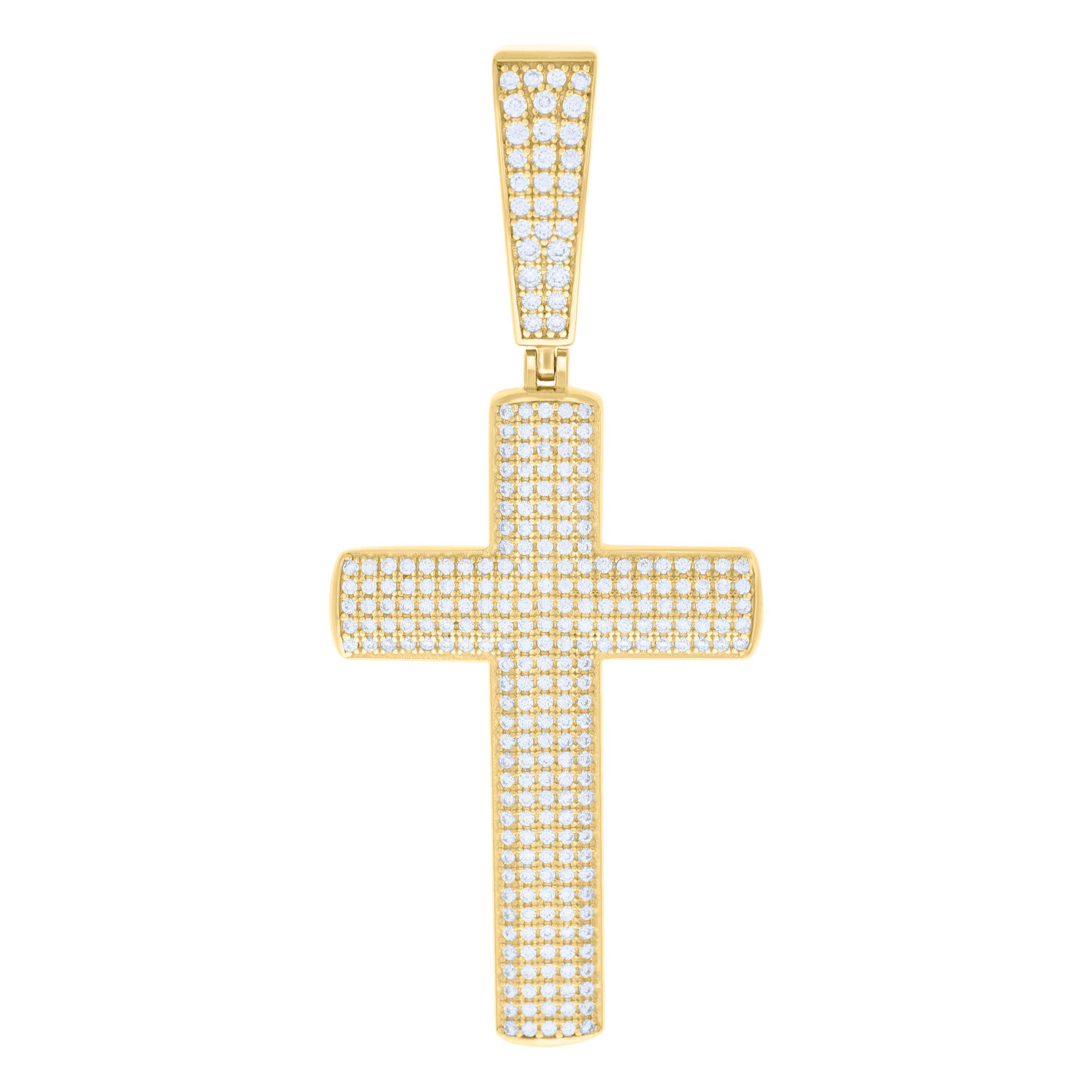 925 Sterling Silver Yellow-tone Mens 1.26ct Moissanite Cross Religious Charm Pendant