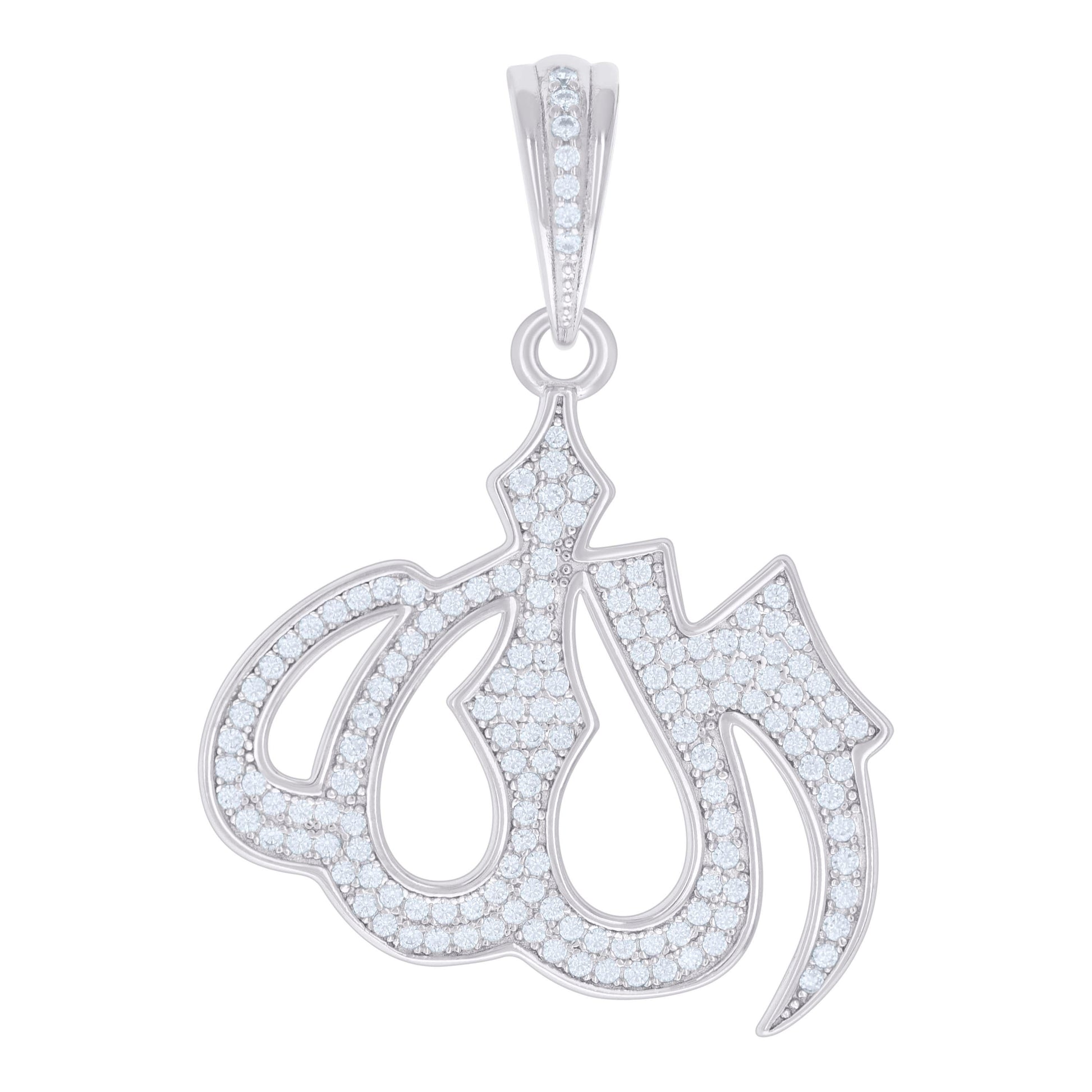 925 Sterling Silver Mens 0.82ct Moissanite ALLAH Symbol Religious Charm Pendant