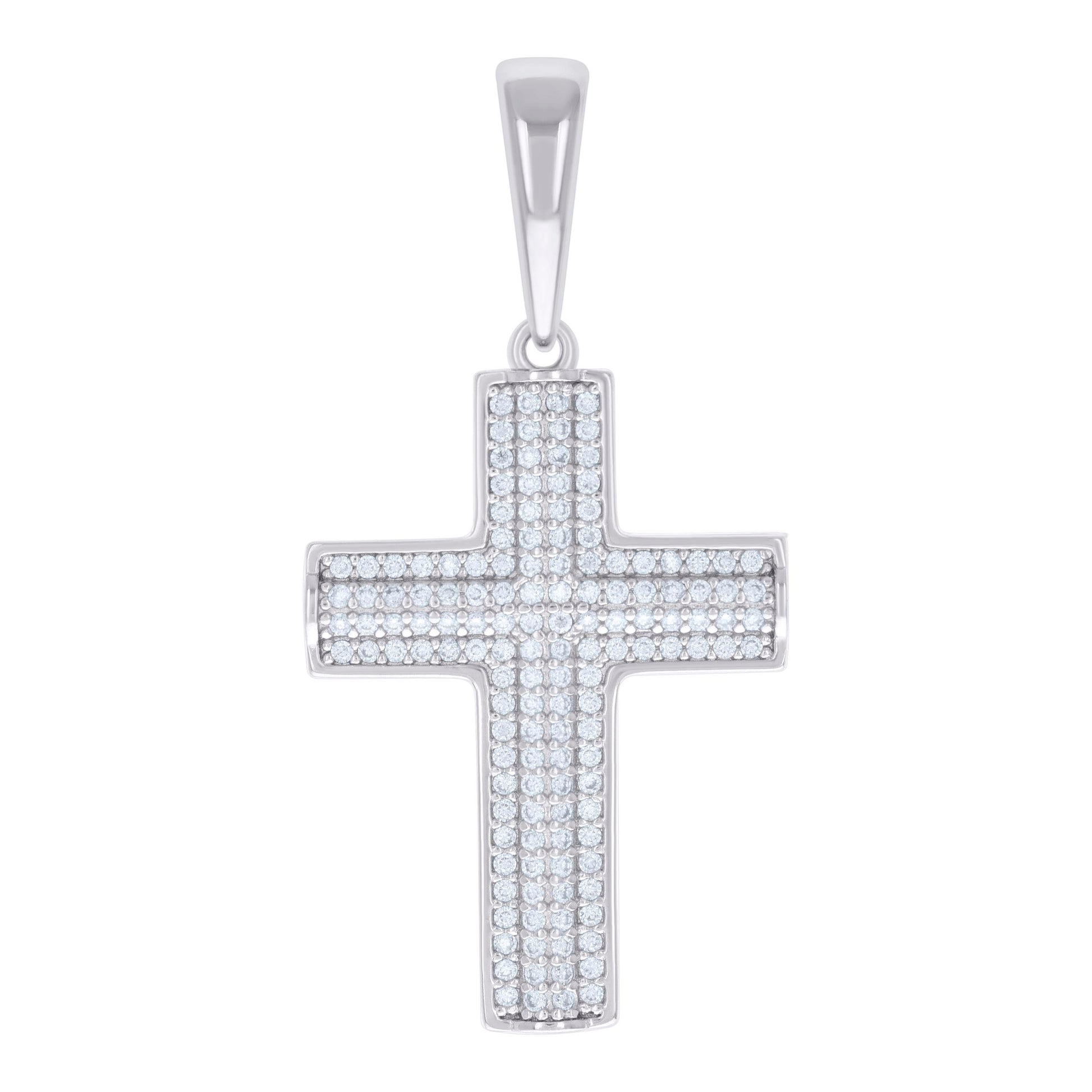 925 Sterling Silver Mens 0.74ct Moissanite Cross Religious Charm Pendant