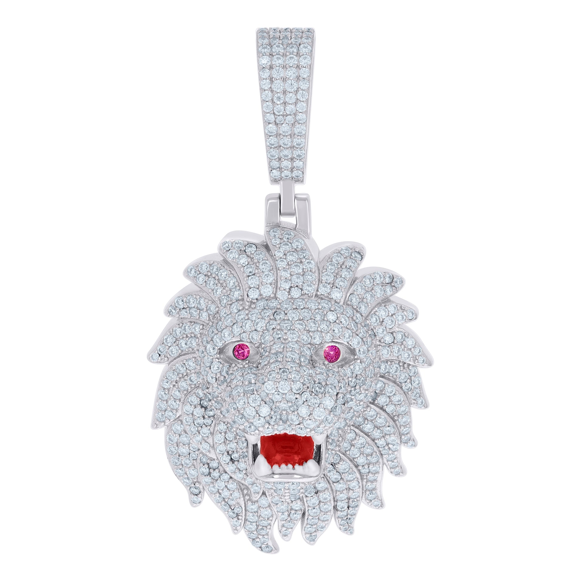 925 Sterling Silver Mens Purple White 7.69ct Moissanite Red Enameled Leo/Lion Head Zodiac Sign/Wildlife Pendant