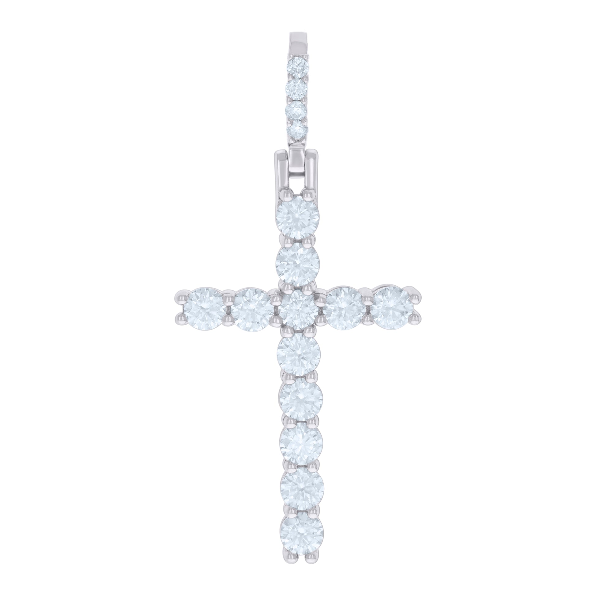 925 Sterling Silver Mens 3.897ct Moissanite Cross Religious Pendant