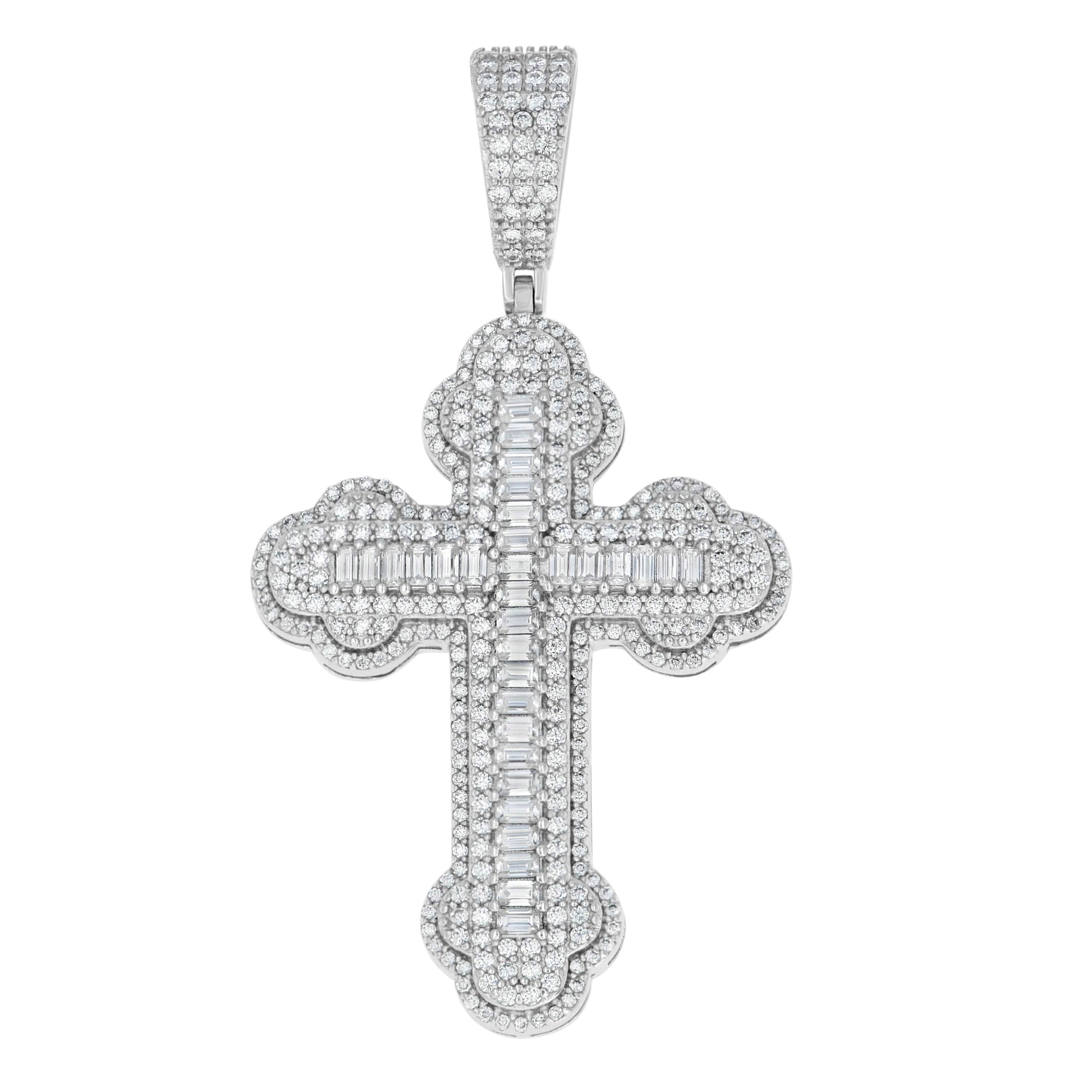 925 Sterling Silver Mens Round 2.1ct, Baguette 1.69ct Moissanite Cross Religious Pendant