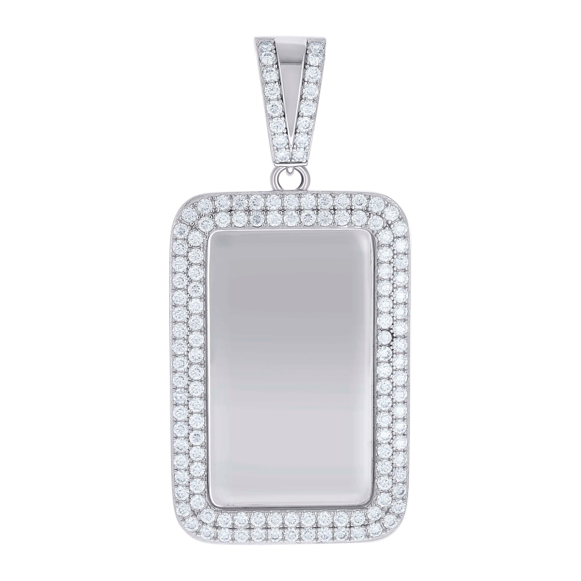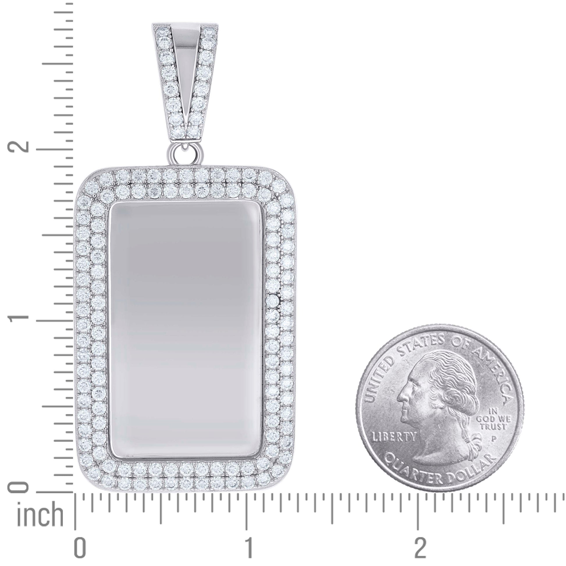 925 Sterling Silver Unisex Round Moissanite Dog Tag Fashion Charm Pendant