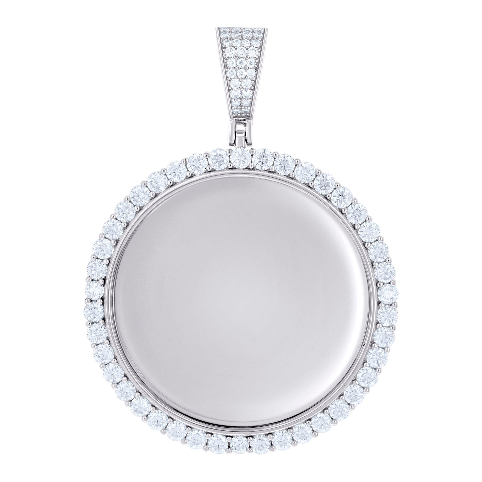 925 Sterling Silver Unisex Round Moissanite Memory Picture Frame Charm Pendant