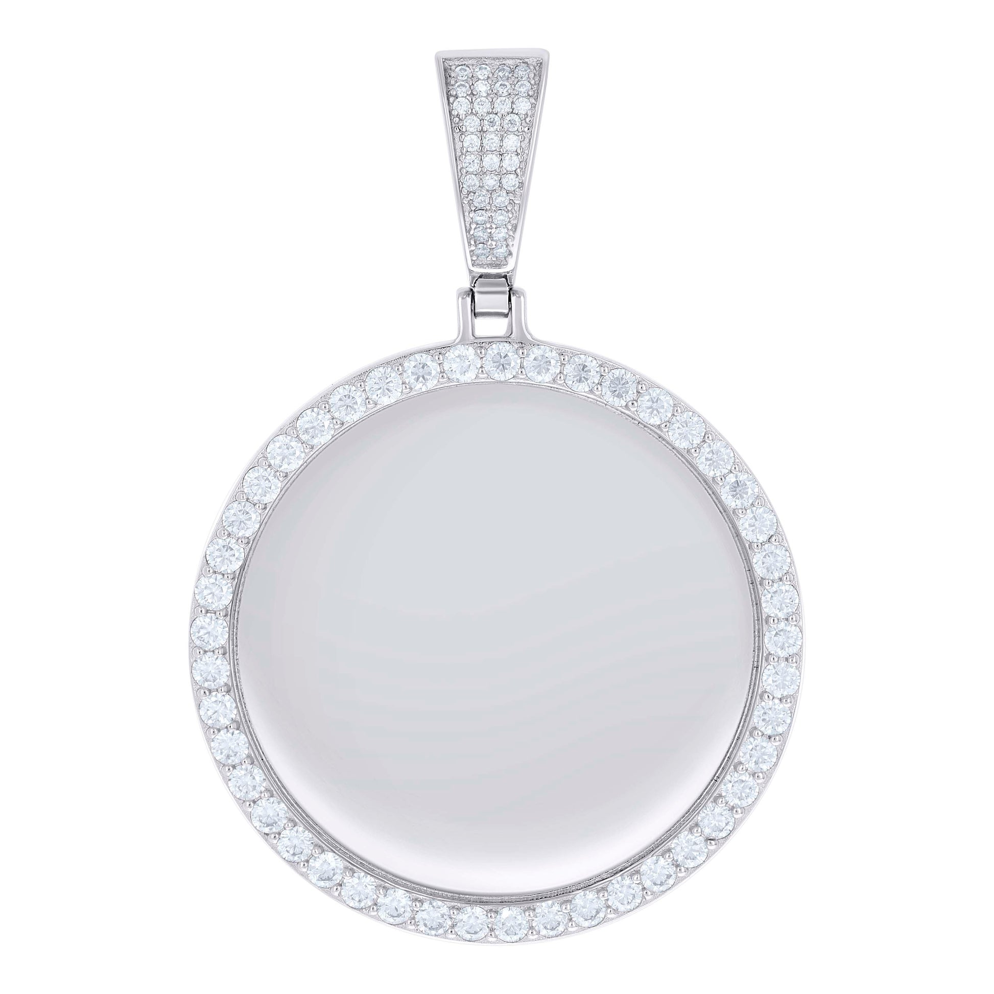 925 Sterling Silver Unisex Round Moissanite Memory Picture Frame Charm Pendant