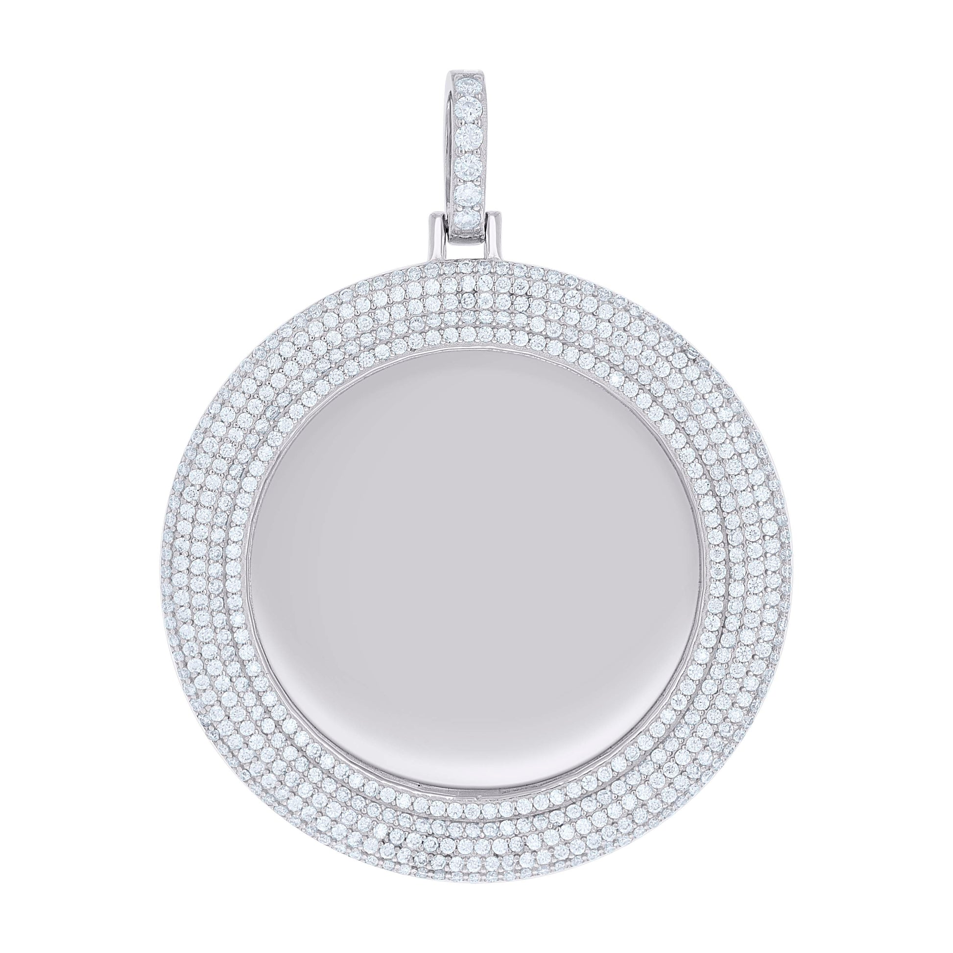 925 Sterling Silver Unisex Round Moissanite Memory Picture Frame Charm Pendant