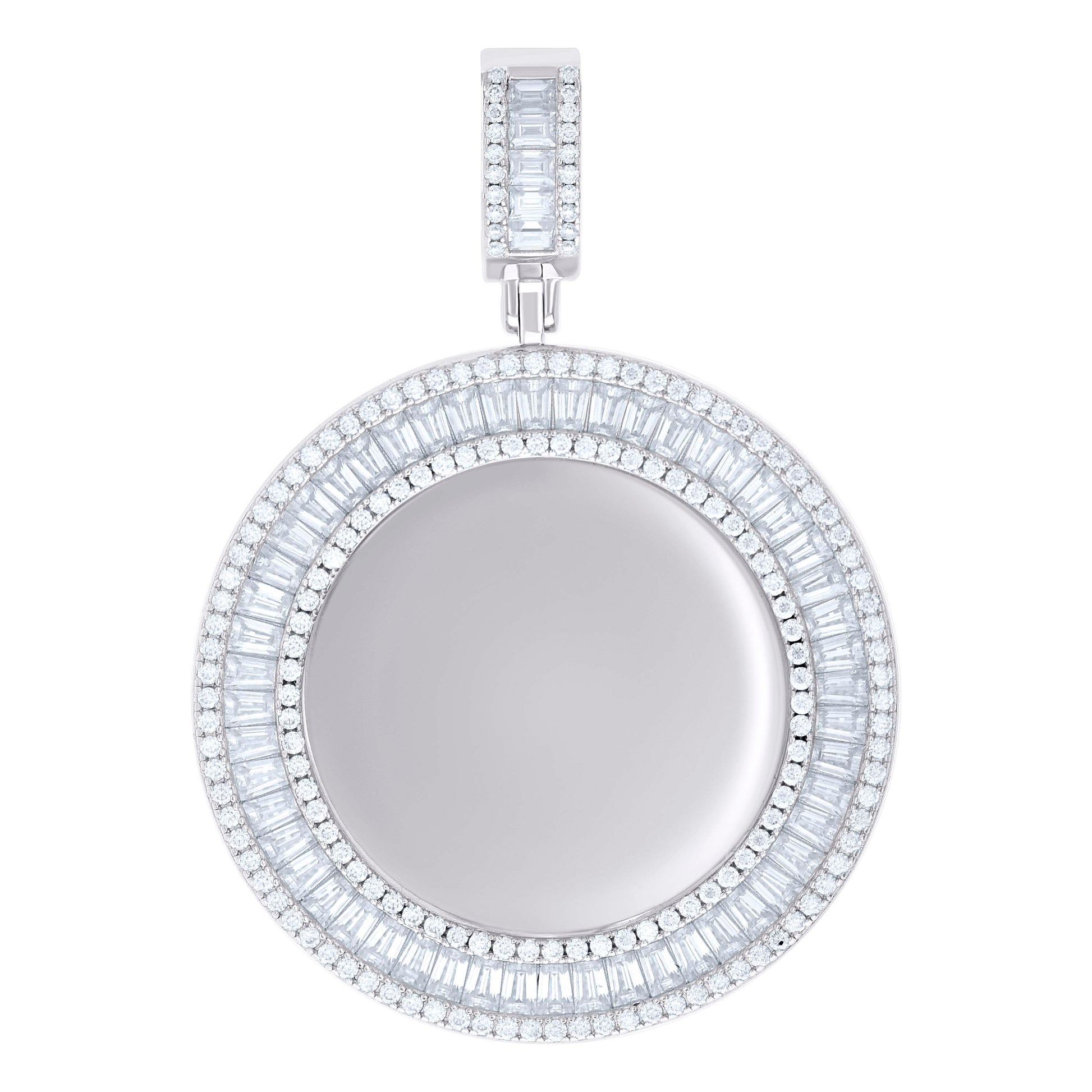 925 Sterling Silver Unisex Round Baguette Moissanite Memory Picture Frame Charm Pendant
