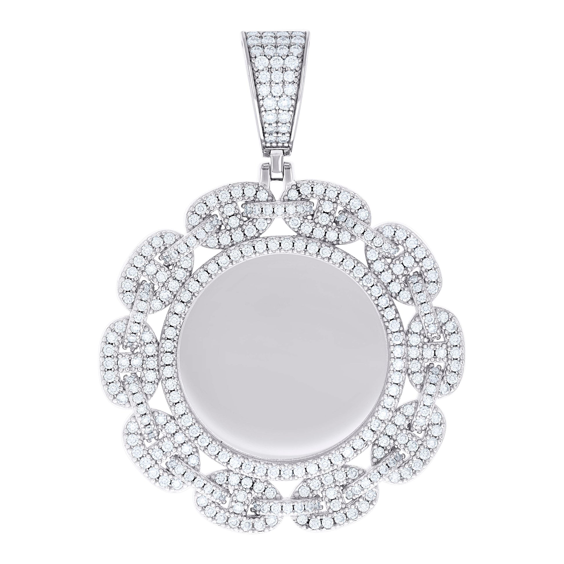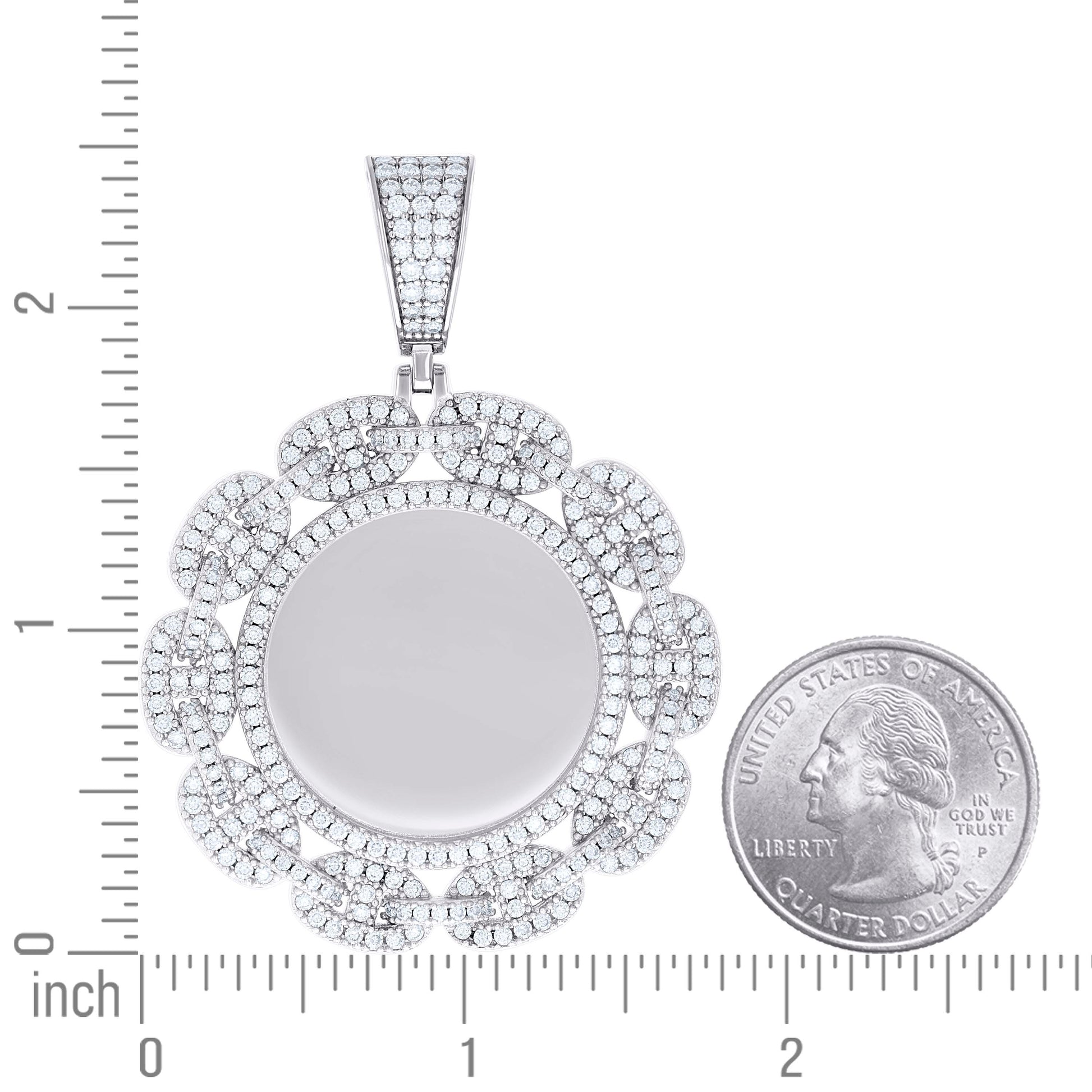 925 Sterling Silver Unisex Round Moissanite Memory Picture Frame Charm Pendant