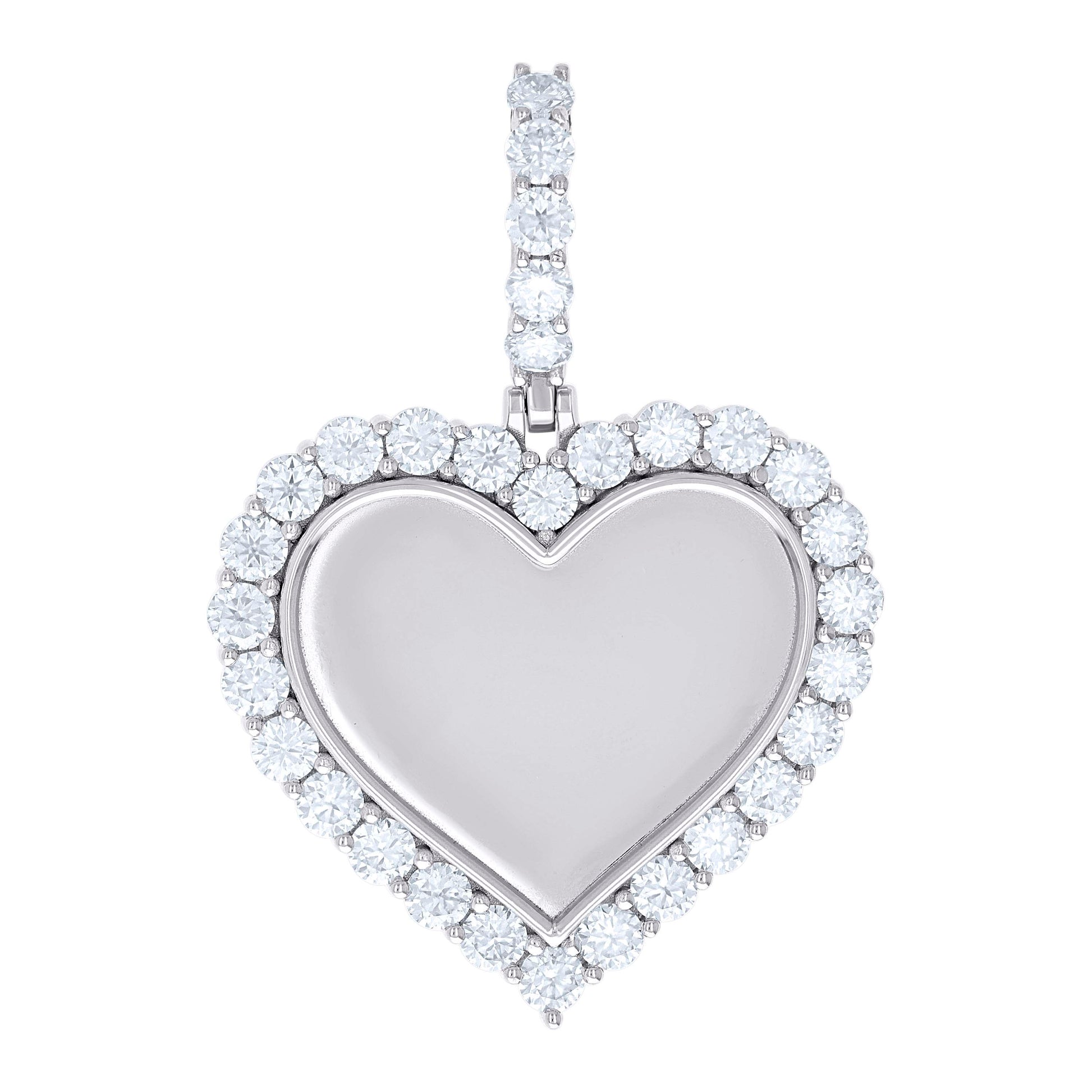 925 Sterling Silver Womens Round Moissanite Heart Memory Picture Frame Charm Pendant