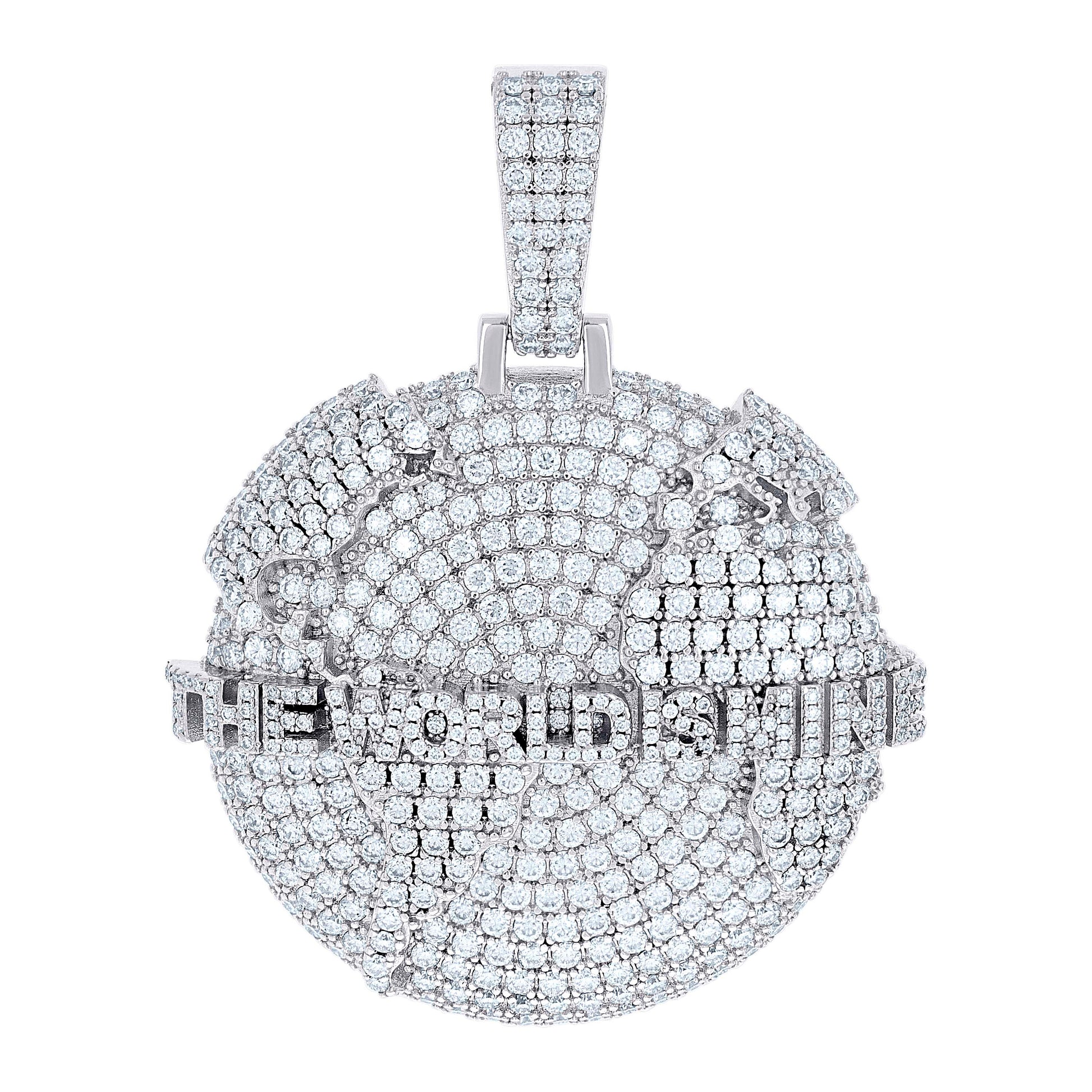 925 Sterling Silver Mens Round Moissanite The World Is Mine Globe Charm Pendant