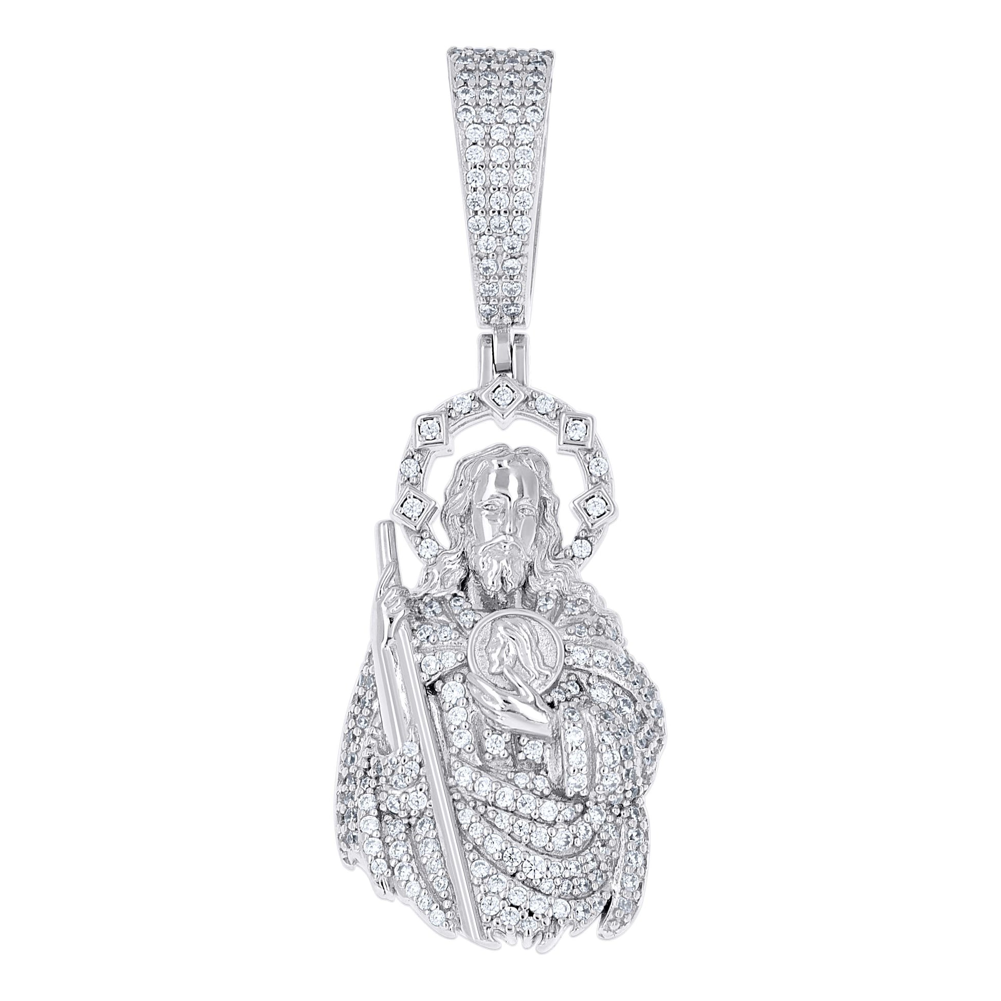 925 Sterling Silver Unisex Moissanite St. Jude Religious Pendant