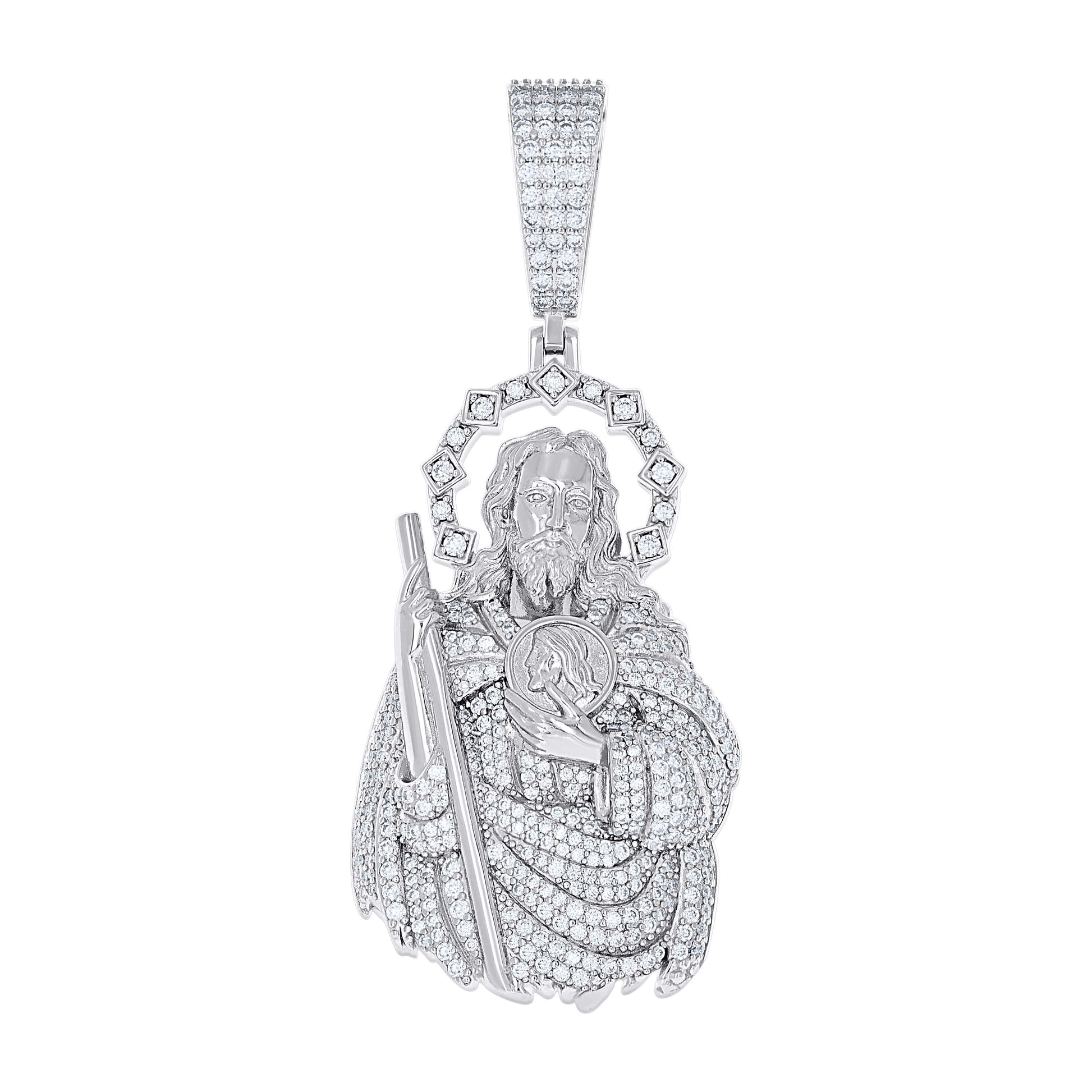 925 Sterling Silver Unisex Moissanite St. Jude Religious Pendant
