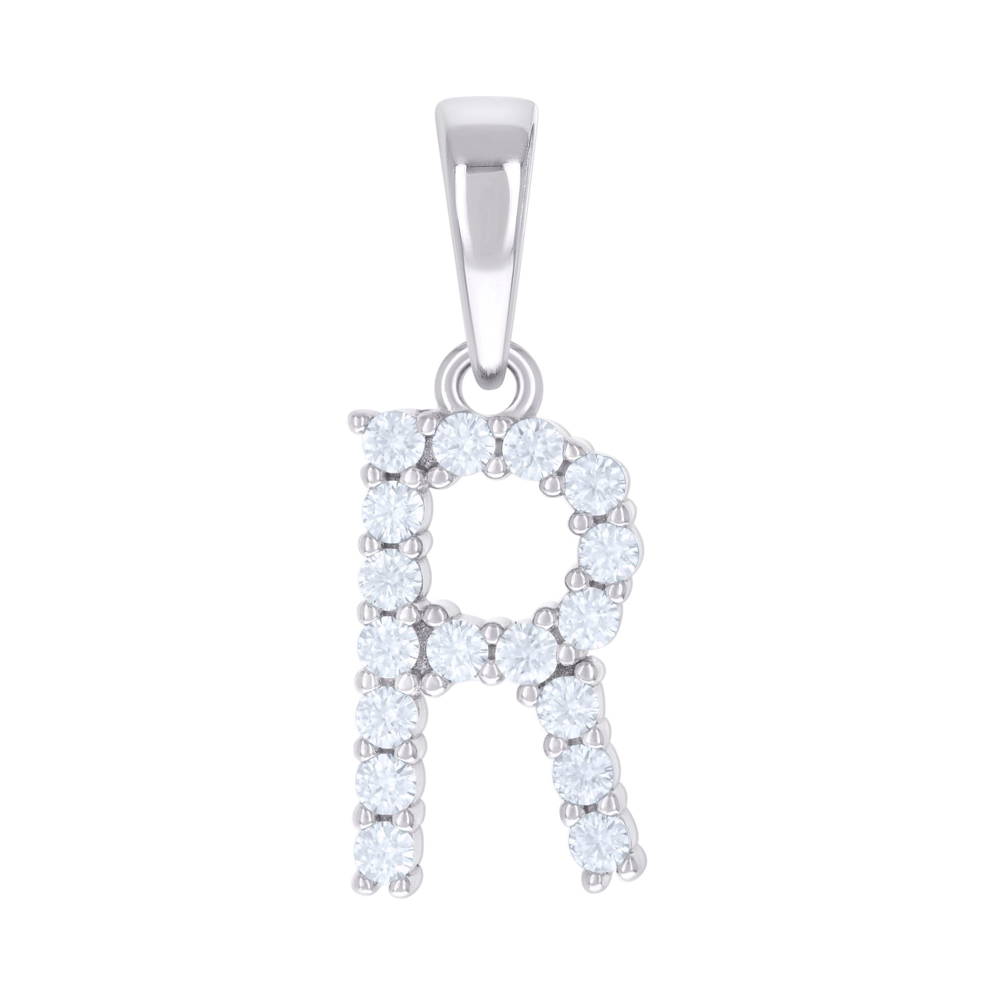 925 Silver Initial Letter "R" Pendant Moissanite C