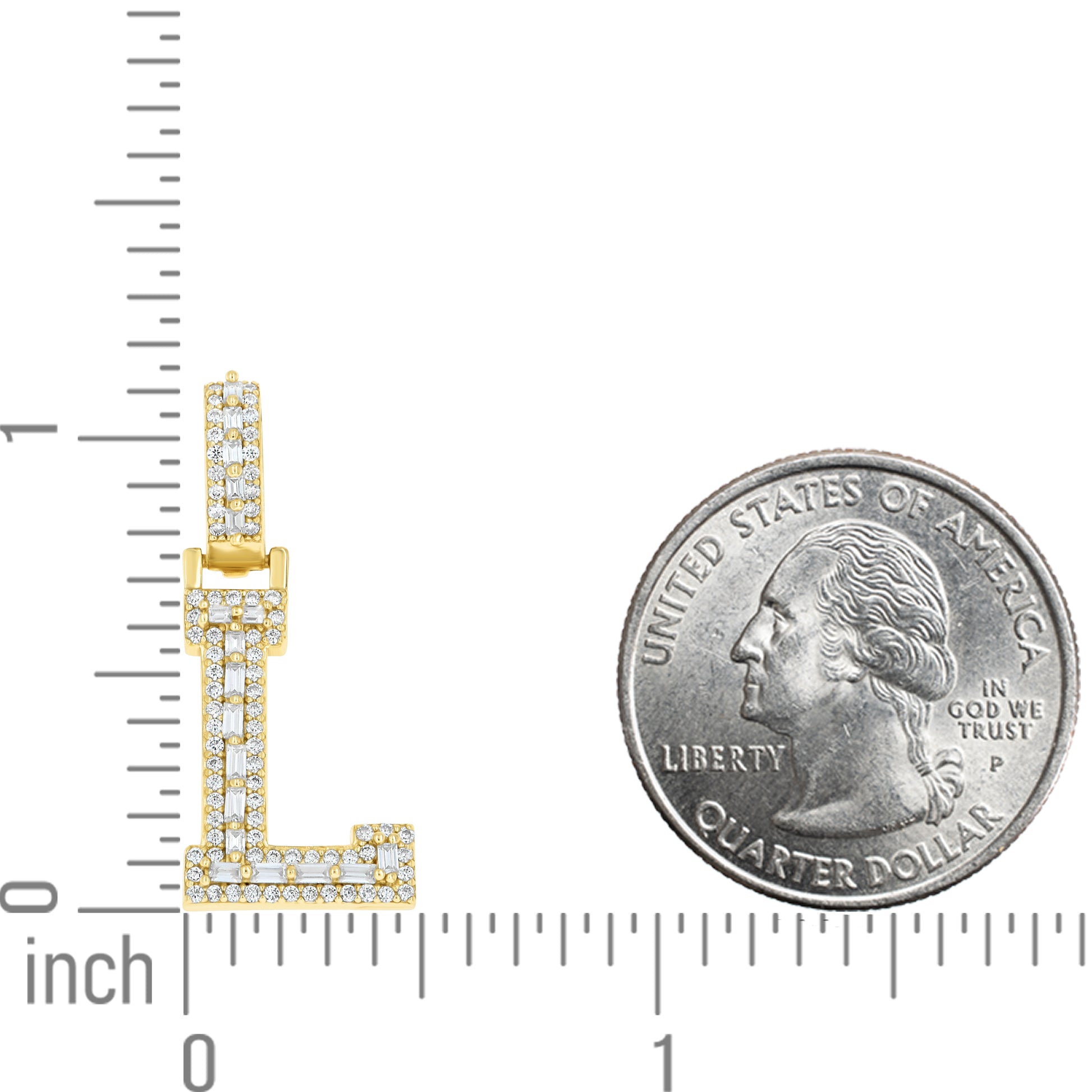 925 Sterling Silver Yellow-Tone Unisex Baguette Round Moissanite Initial Alphabet L Charm Pendant