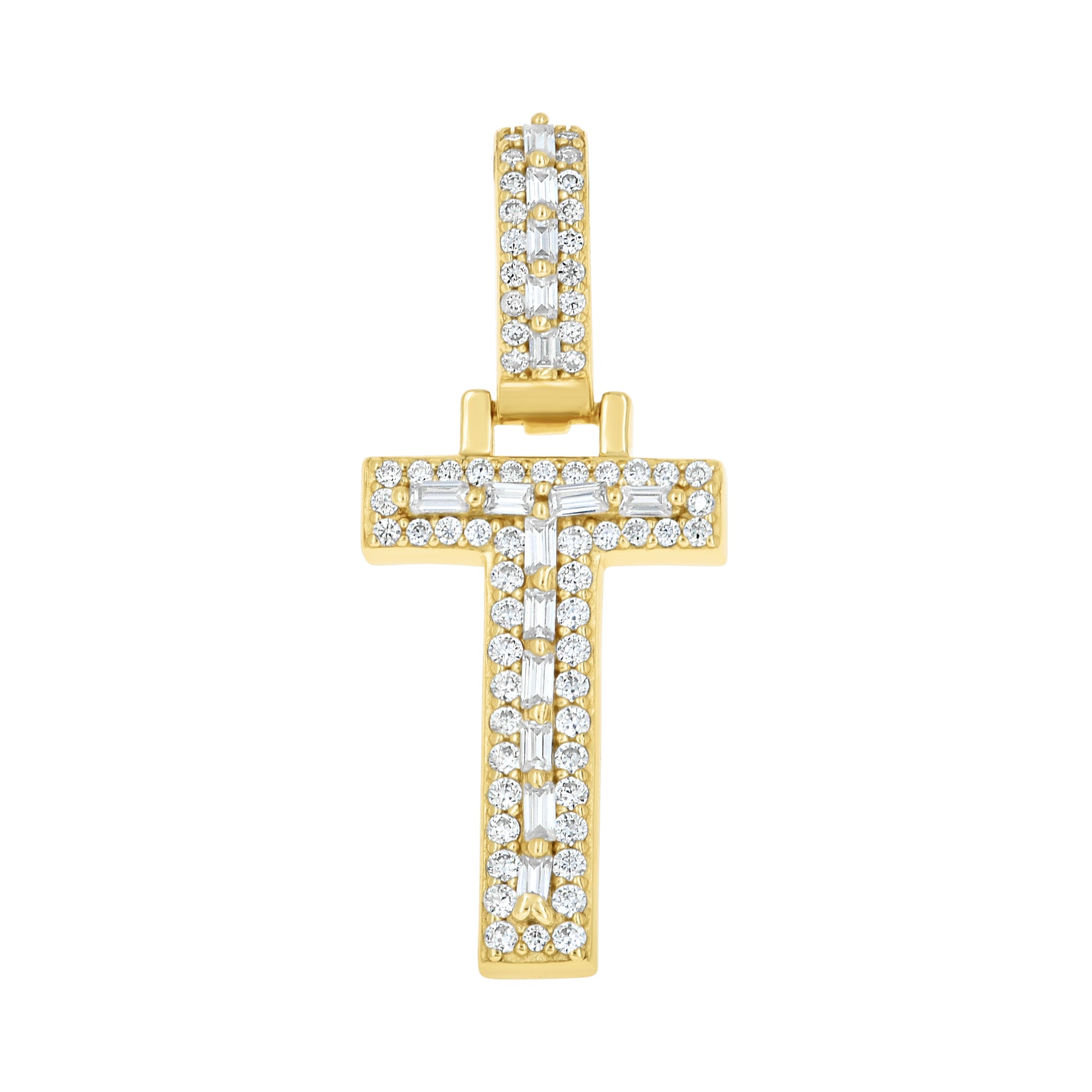 925 Sterling Silver Yellow-Tone Unisex Baguette Round Moissanite Initial Alphabet T Charm Pendant