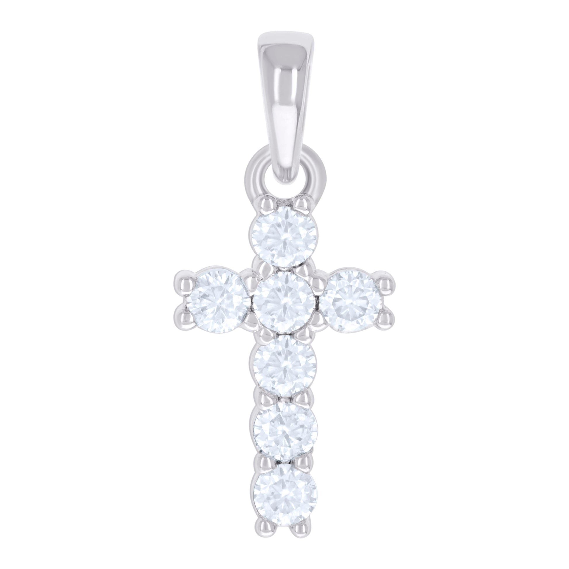 925 Sterling Silver Womens 0.74ct Moissanite Cross Religious Charm Pendant