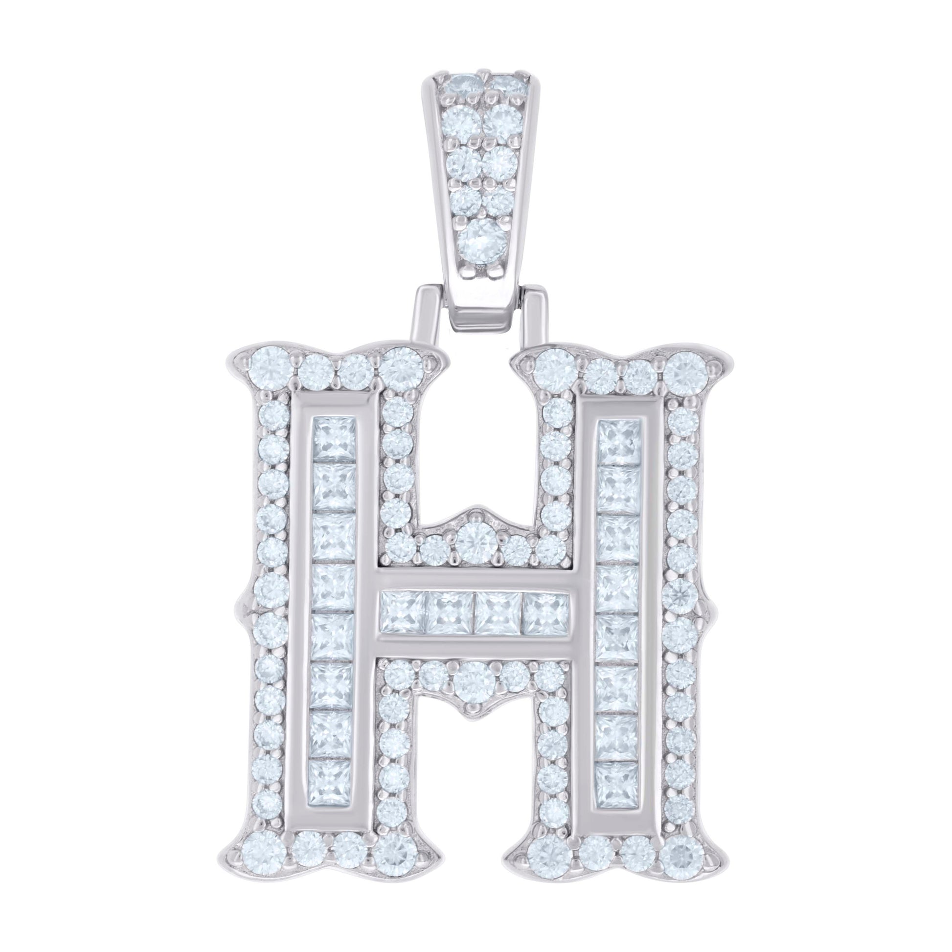 925 Sterling Silver Unisex Baguette Round Moissanite 0.64ct Initial Alphabet H Charm Pendant