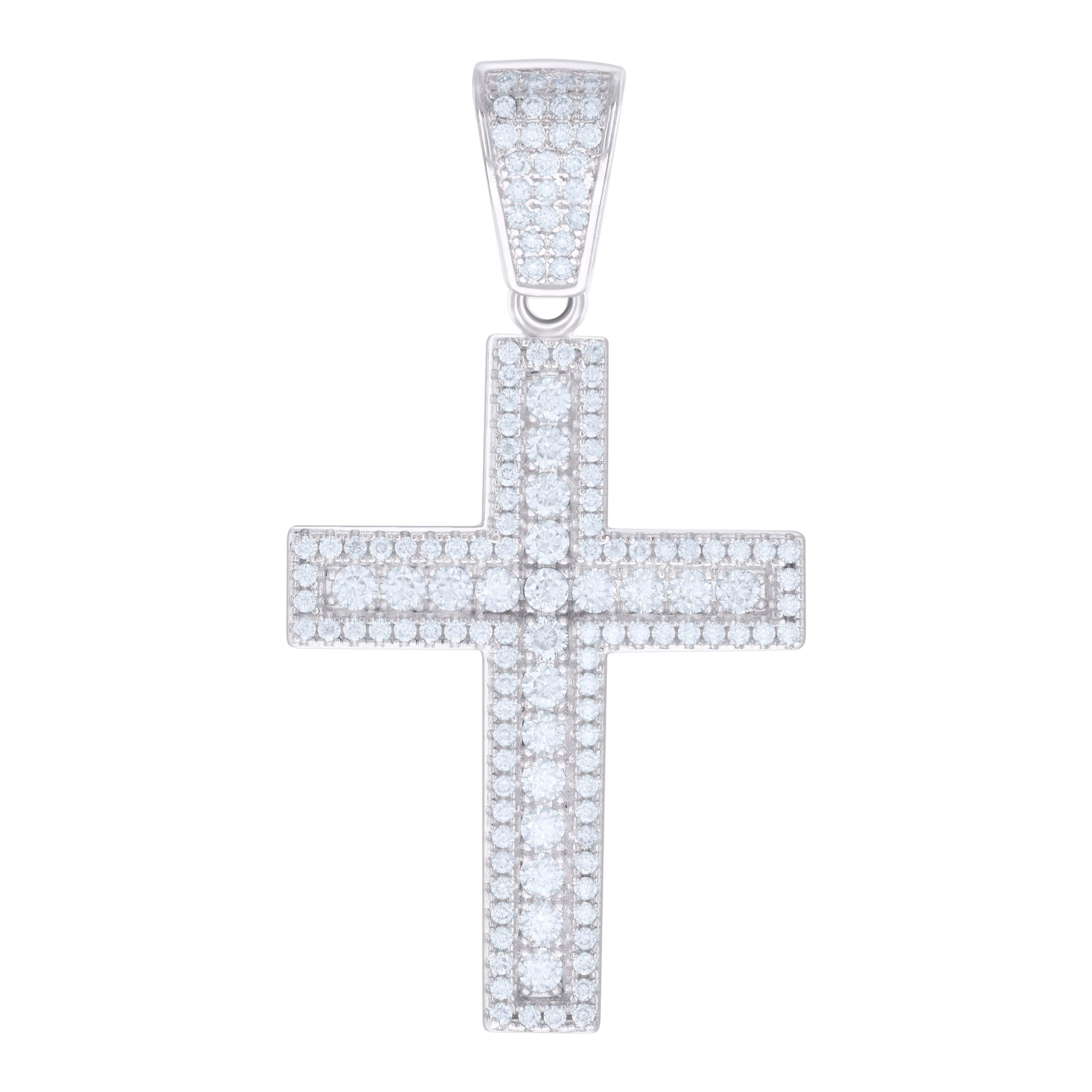 925 Sterling Silver Mens 1.85ct Moissanite Cross Religious Charm Pendant