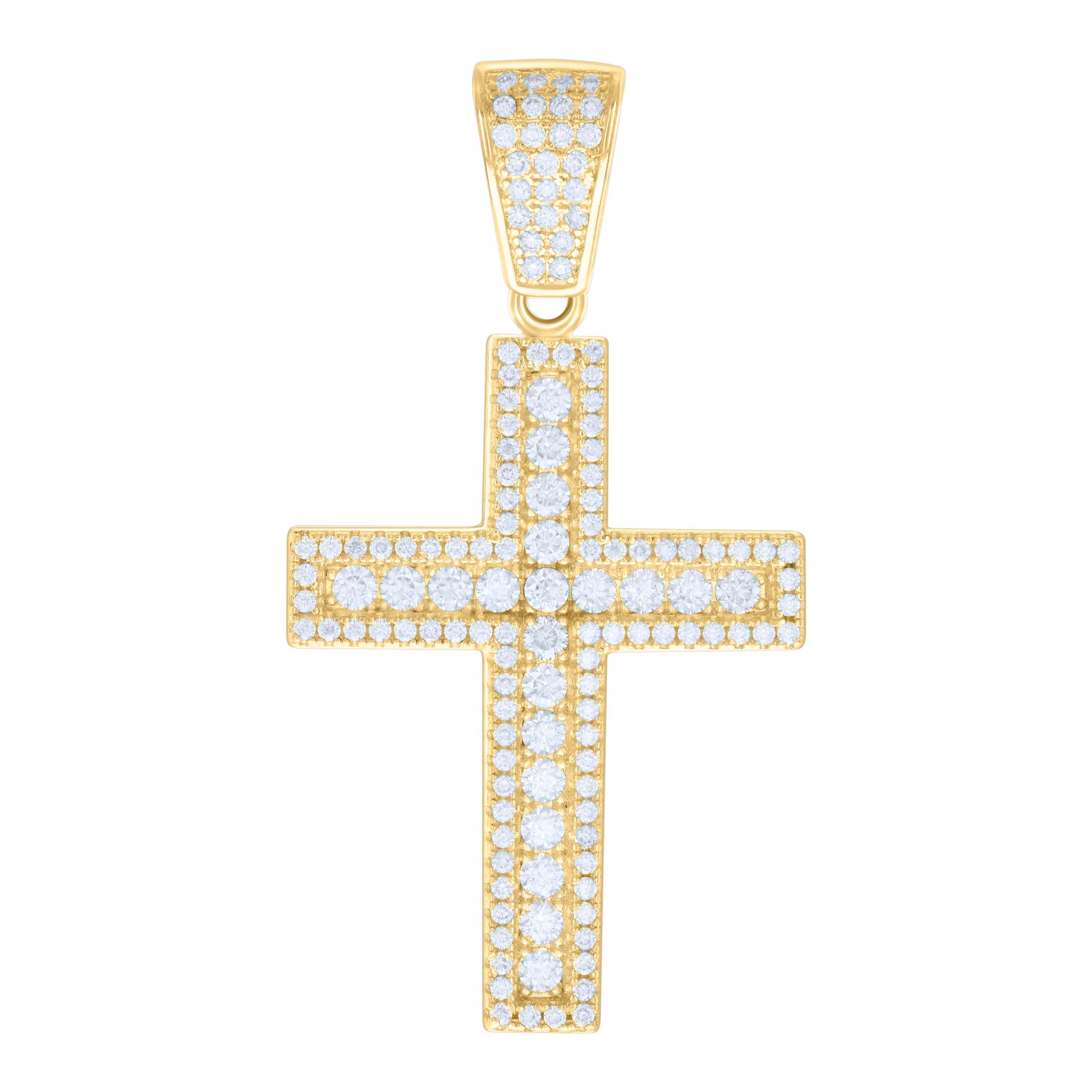 925 Sterling Silver Yellow-tone Mens 1.85ct Moissanite Cross Religious Charm Pendant