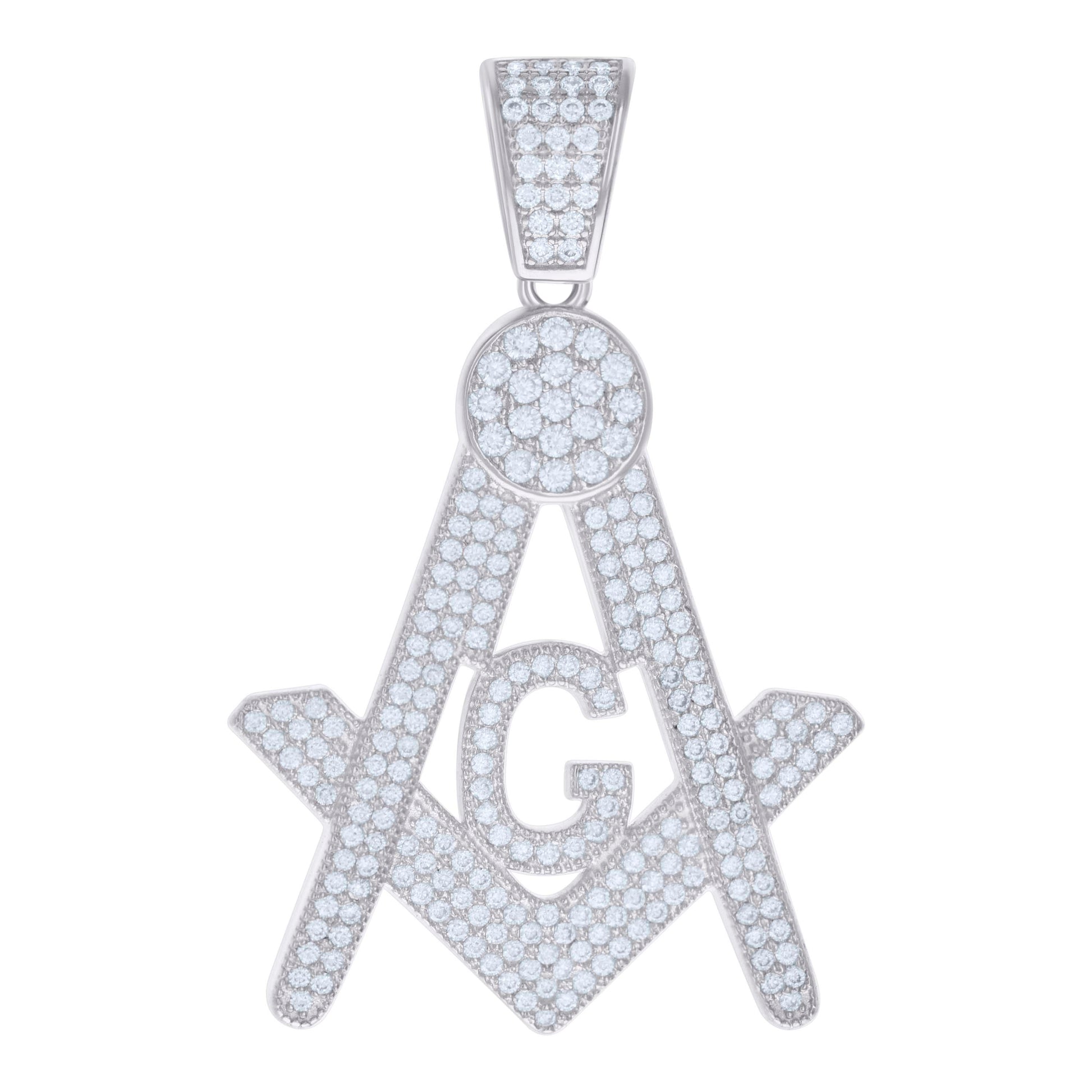 925 Sterling Silver Mens 1.91ct Moissanite Masonic Symbol Religious Charm Pendant