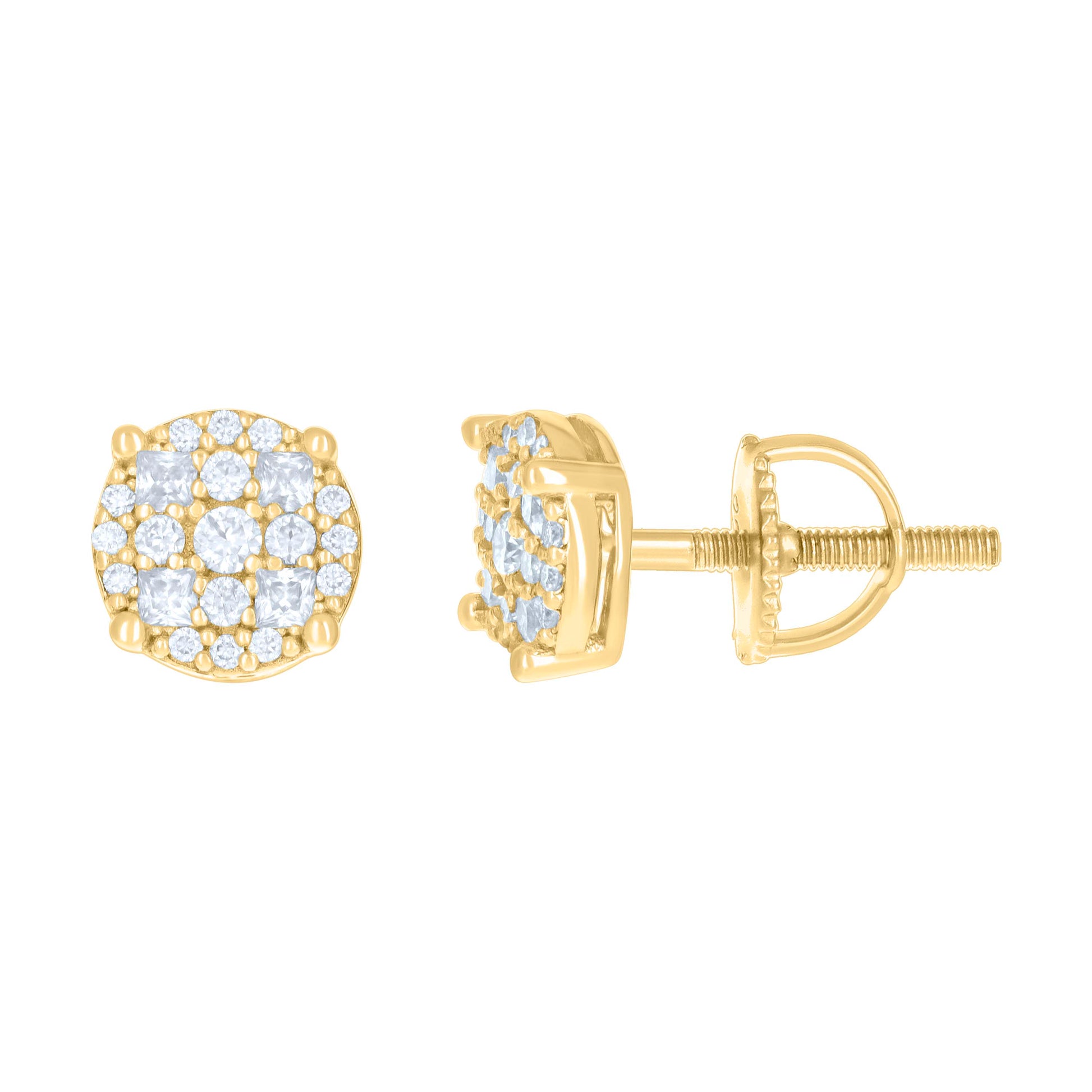 925 Sterling Silver Yellow-tone Womens 0.24ct Round 0.19ct Baguette Moissanite Fashion Stud Earrings
