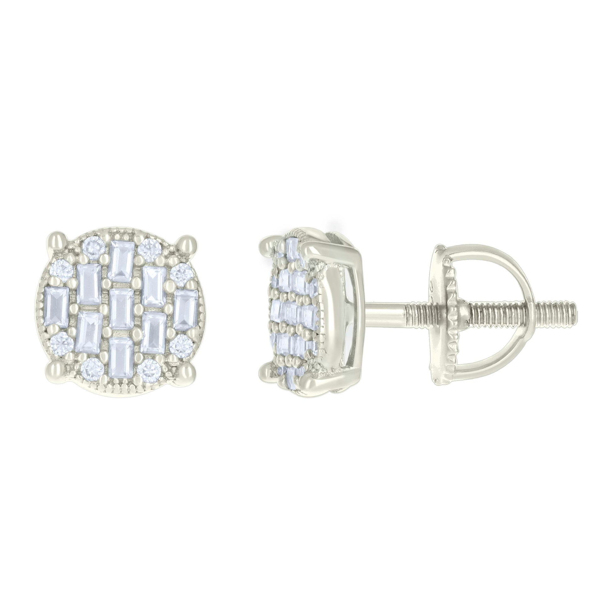 925 Sterling Silver Womens 0.08ct Round 0.51ct Baguette Moissanite Fashion Stud Earrings
