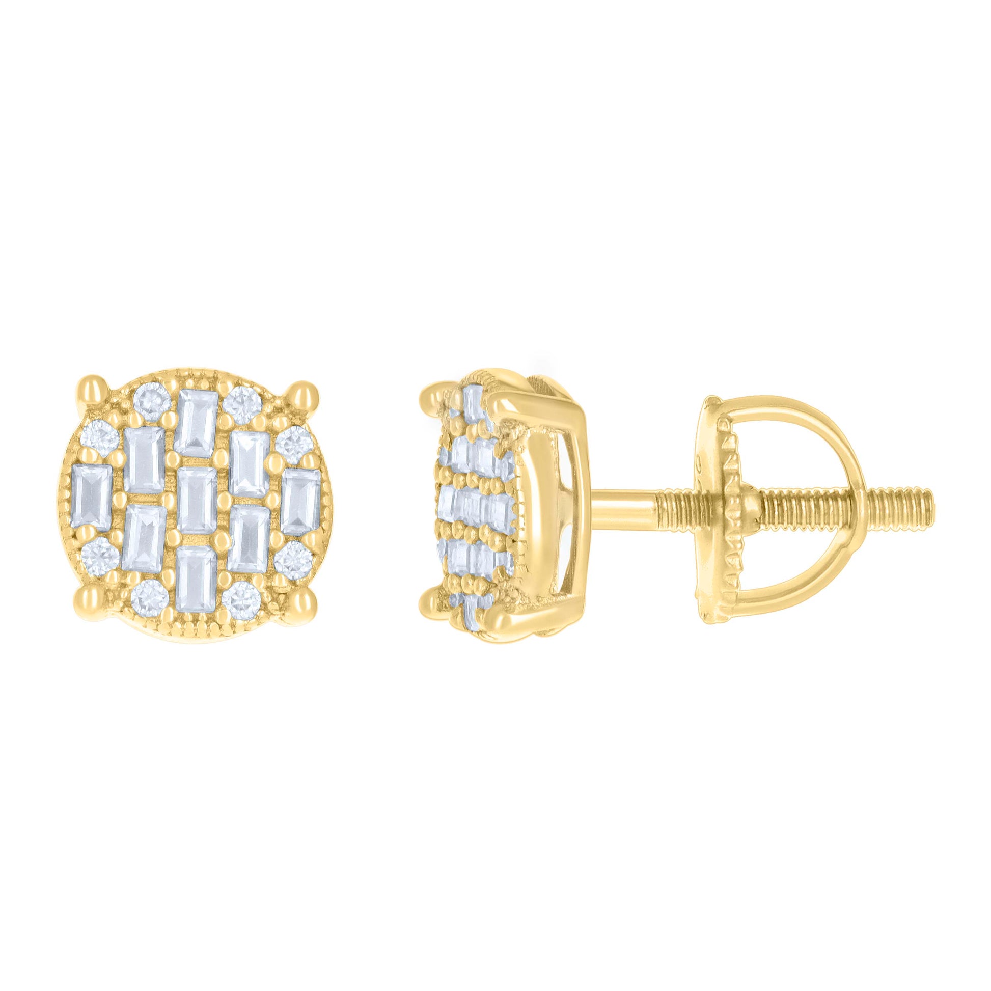 925 Sterling Silver Yellow-tone Womens 0.08ct Round 0.51ct Baguette Moissanite Fashion Stud Earrings