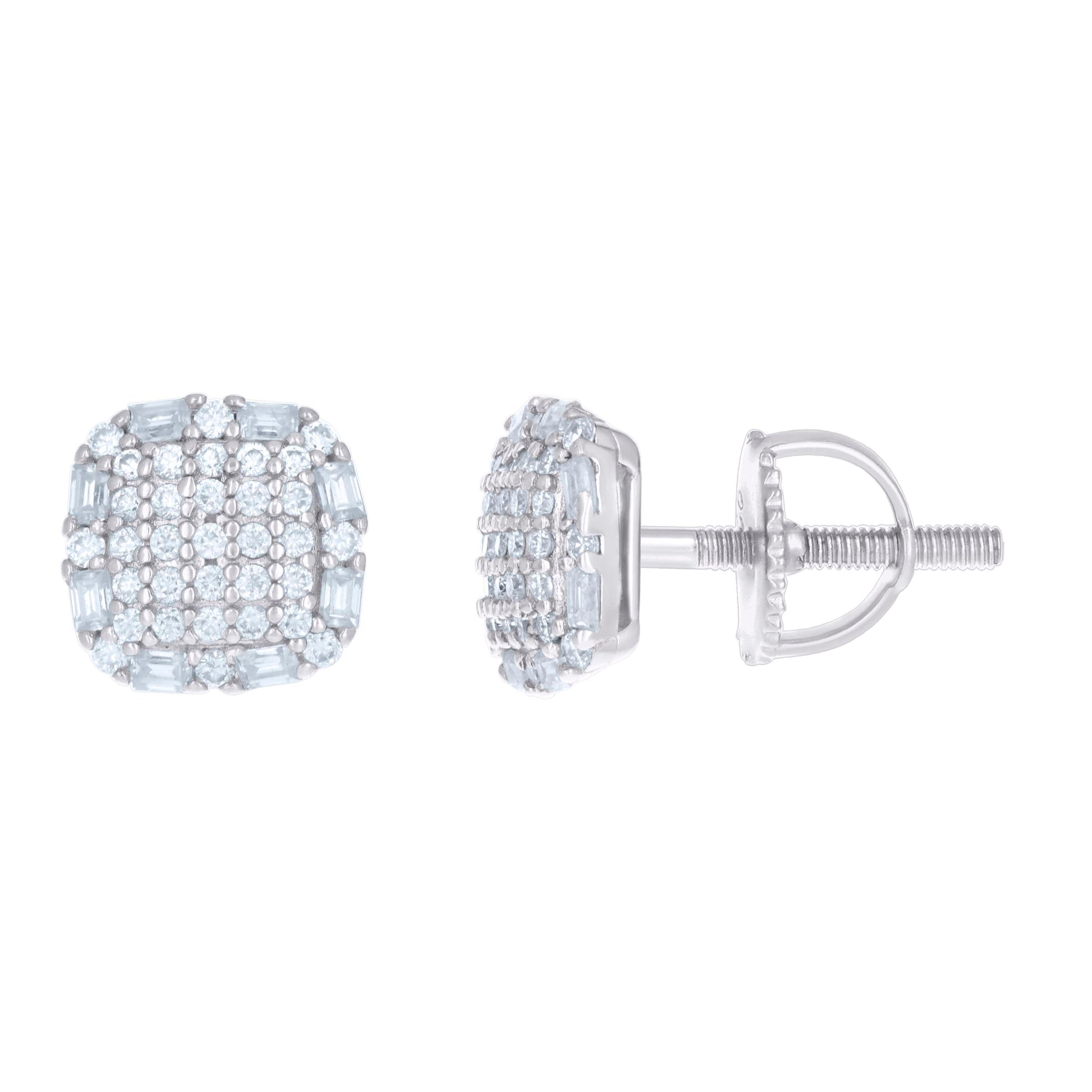 925 Sterling Silver Womens 0.30ct Baguette 0.29ct Round Moissanite Square Fashion Stud Earrings