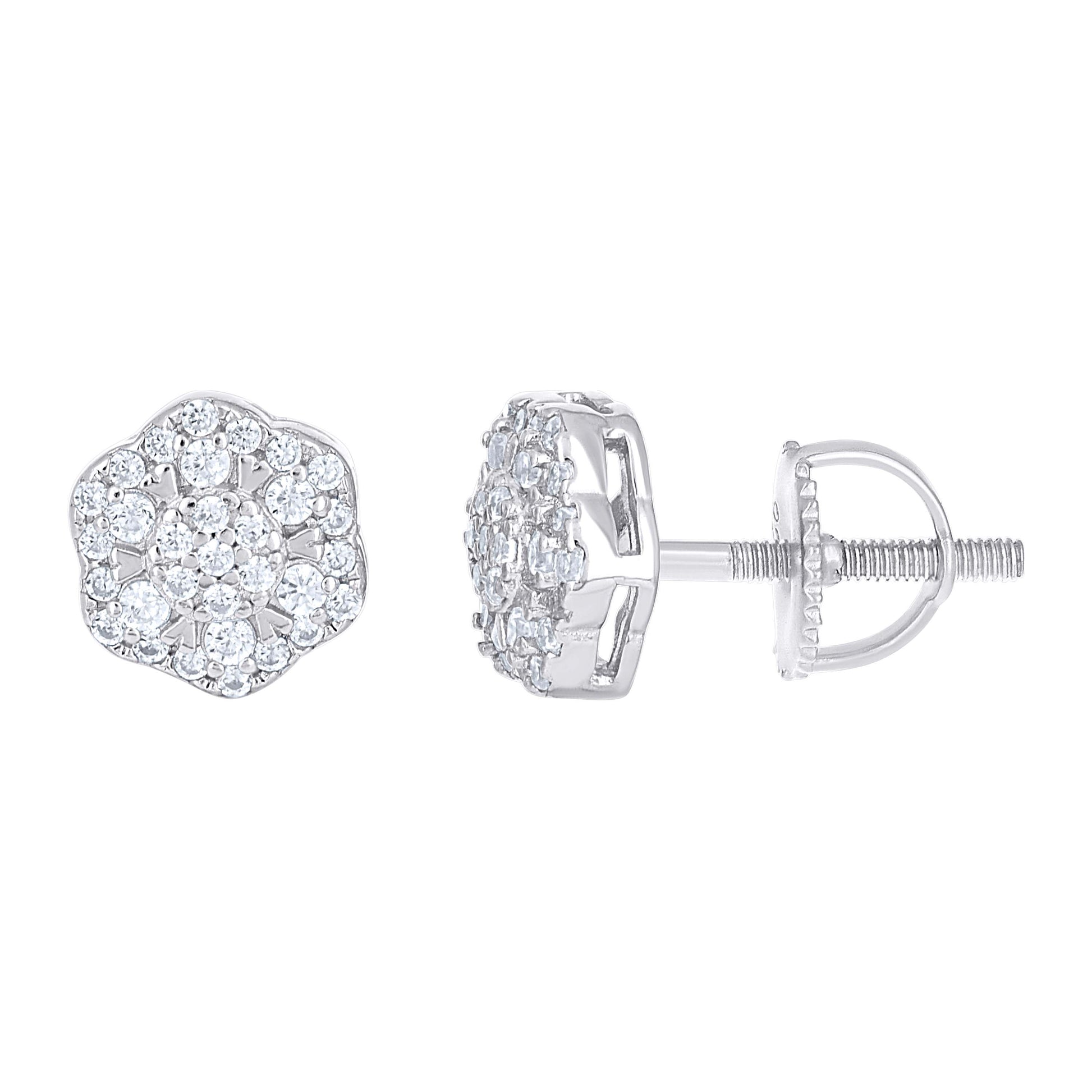 925 Sterling Silver Womens Moissanite Flower Fashion Stud Earrings
