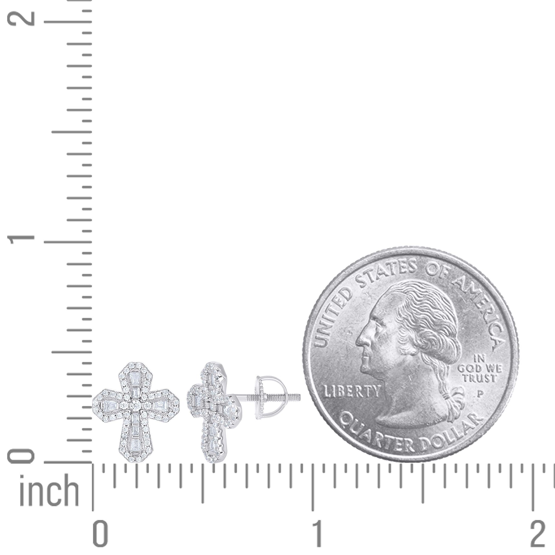 925 Sterling Silver Unisex Round Baguette Moissanite Cross Religious Stud Earrings