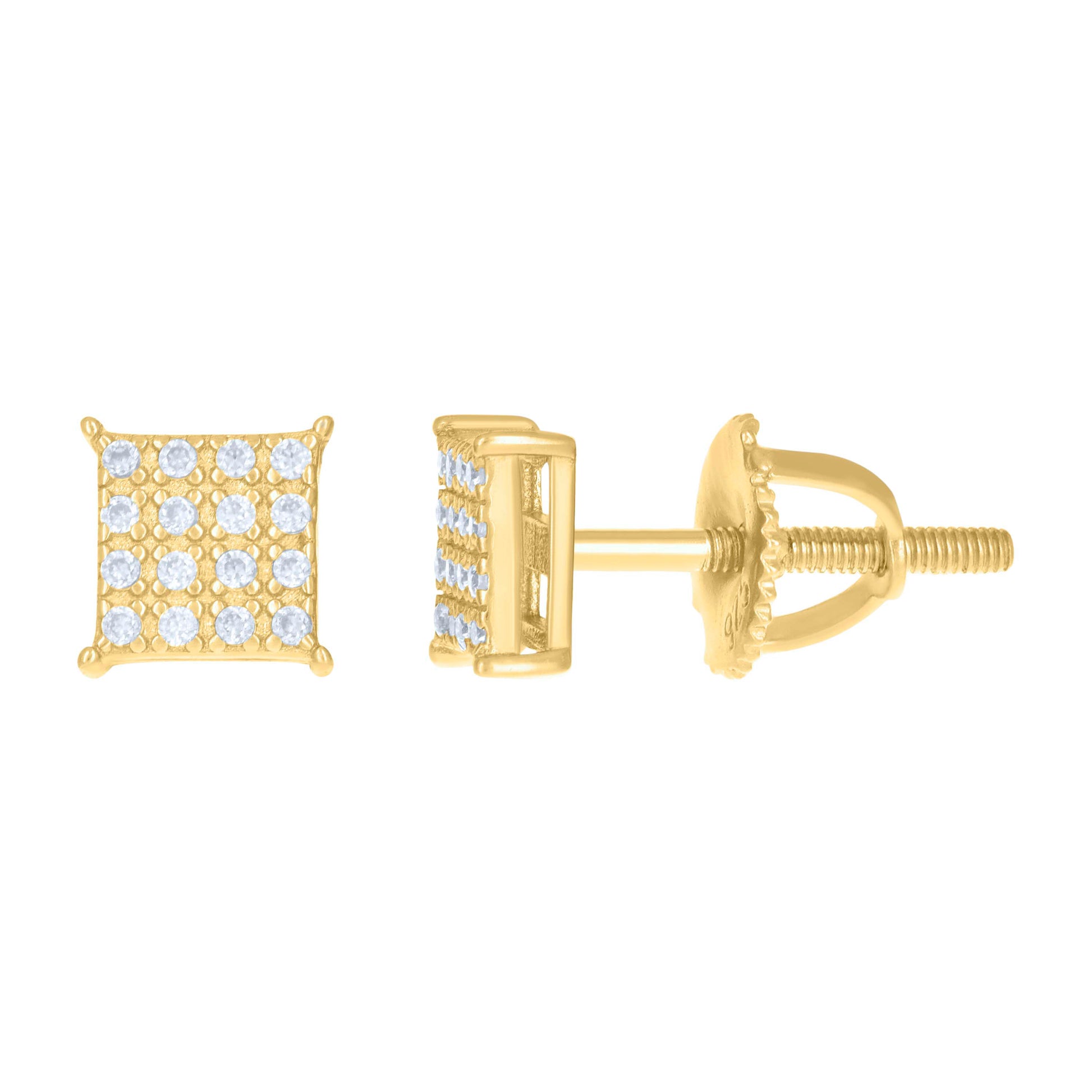925 Sterling Silver Womens Yellow-tone 0.13ct Moissanite Square Fashion Stud Earrings