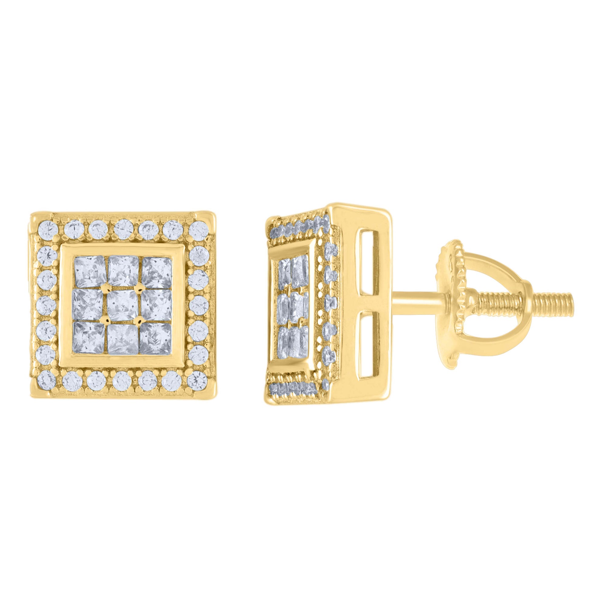 925 Sterling Silver Yellow-tone Womens Round Princess-Cut Moissanite 0.62ct Square Fashion Stud Earrings