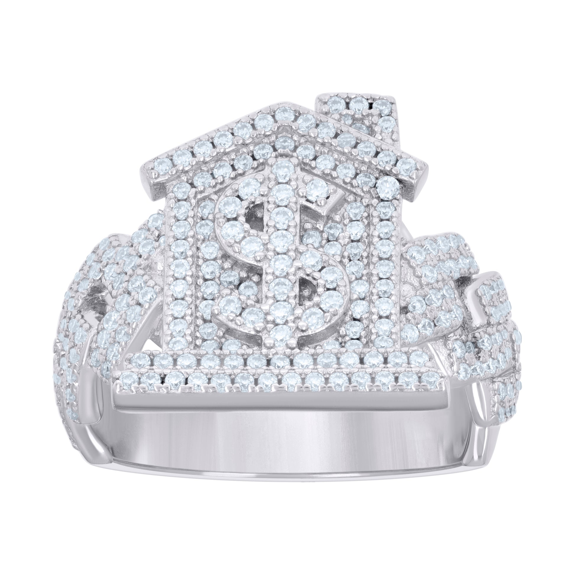 925 Sterling Silver Mens Baguette 1.22ct Round Moissanite Dollar Sign Trap House Fashion Ring Size 10