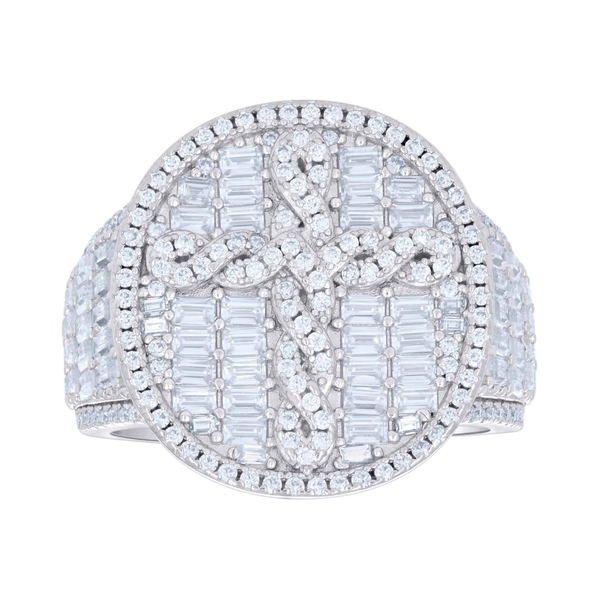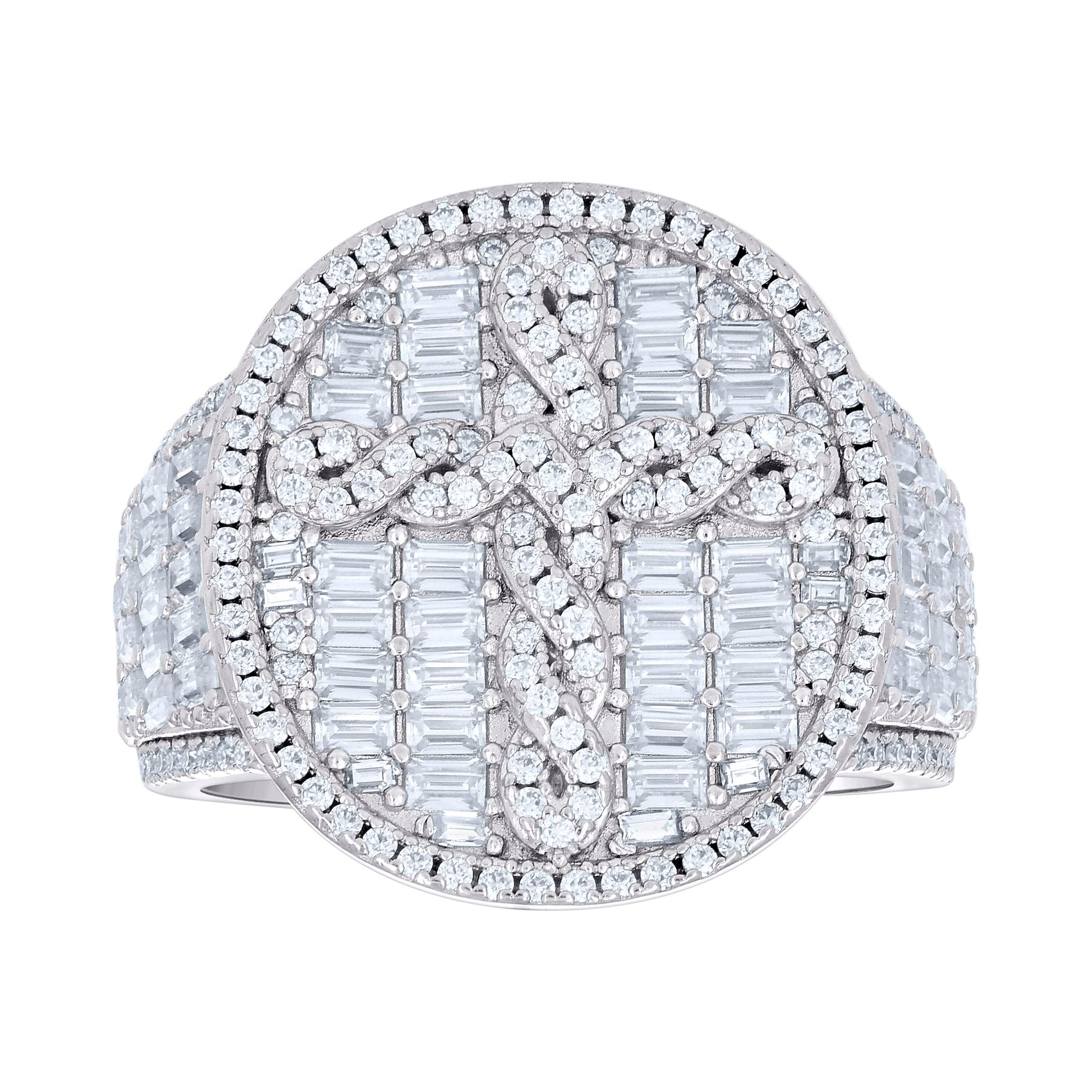 925 Sterling Silver Mens 0.76ct Round 2.9ct Baguette Moissanite Cross Religious Ring Size 9