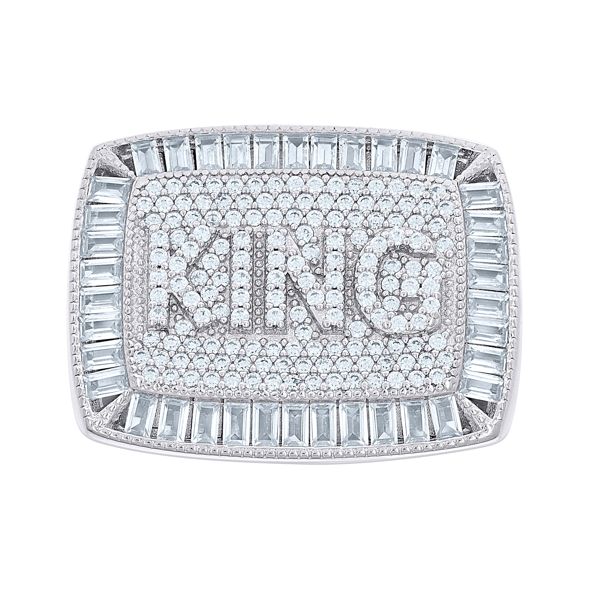 925 Sterling Silver Mens 0.79ct Round, 2.15ct Baguette Moissanite KING Square Head Fashion Ring Size 10