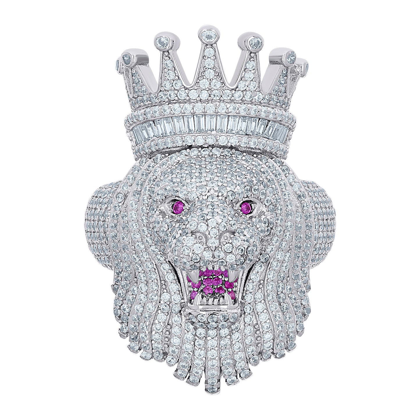 925 Sterling Silver Mens Pink White 2.92ct Moissanite Leo/Lion Zodiac Sign/Wildlife Ring Size 10