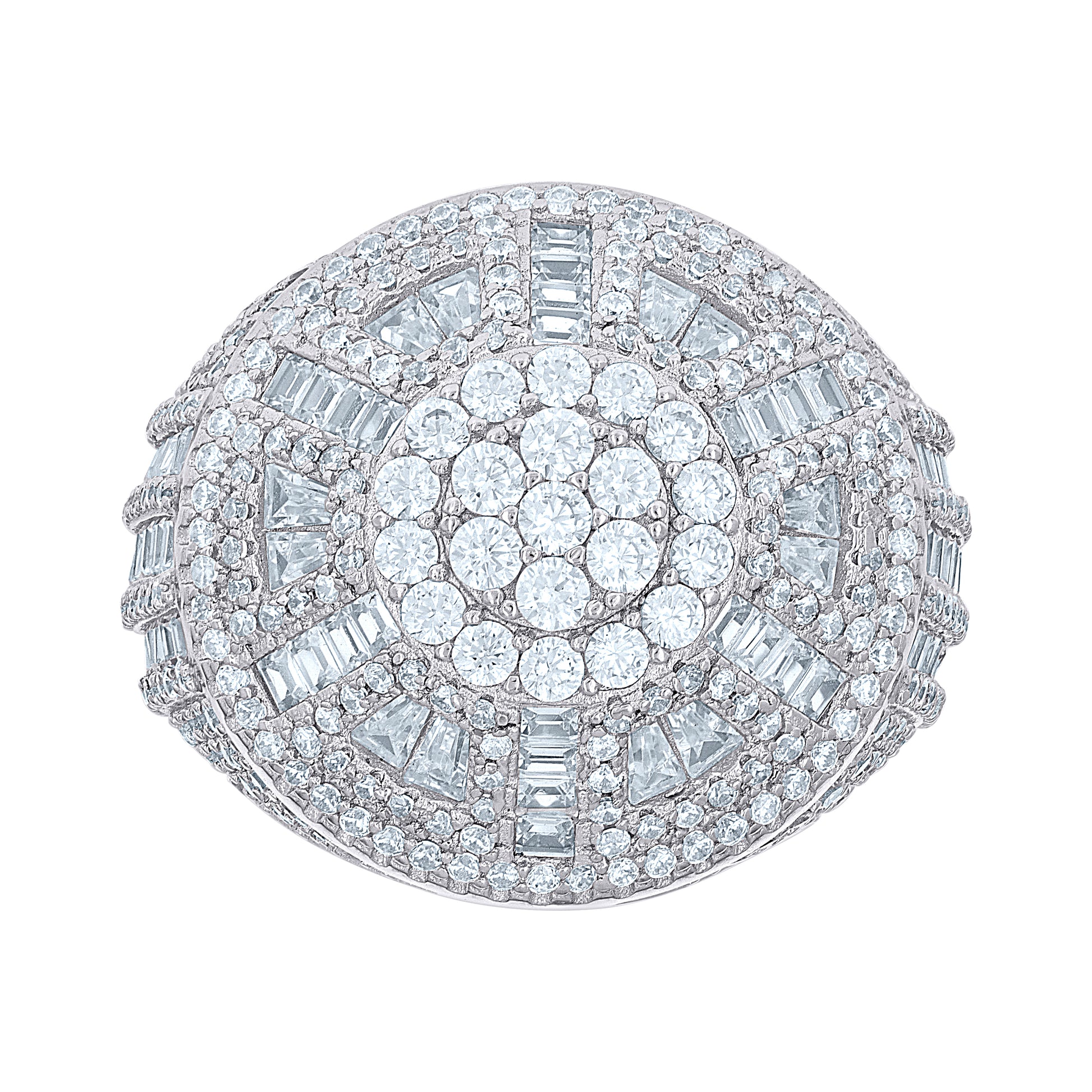 925 Sterling Silver Mens Round Baguette Moissanite Round Cluster Fashion Ring Size 10