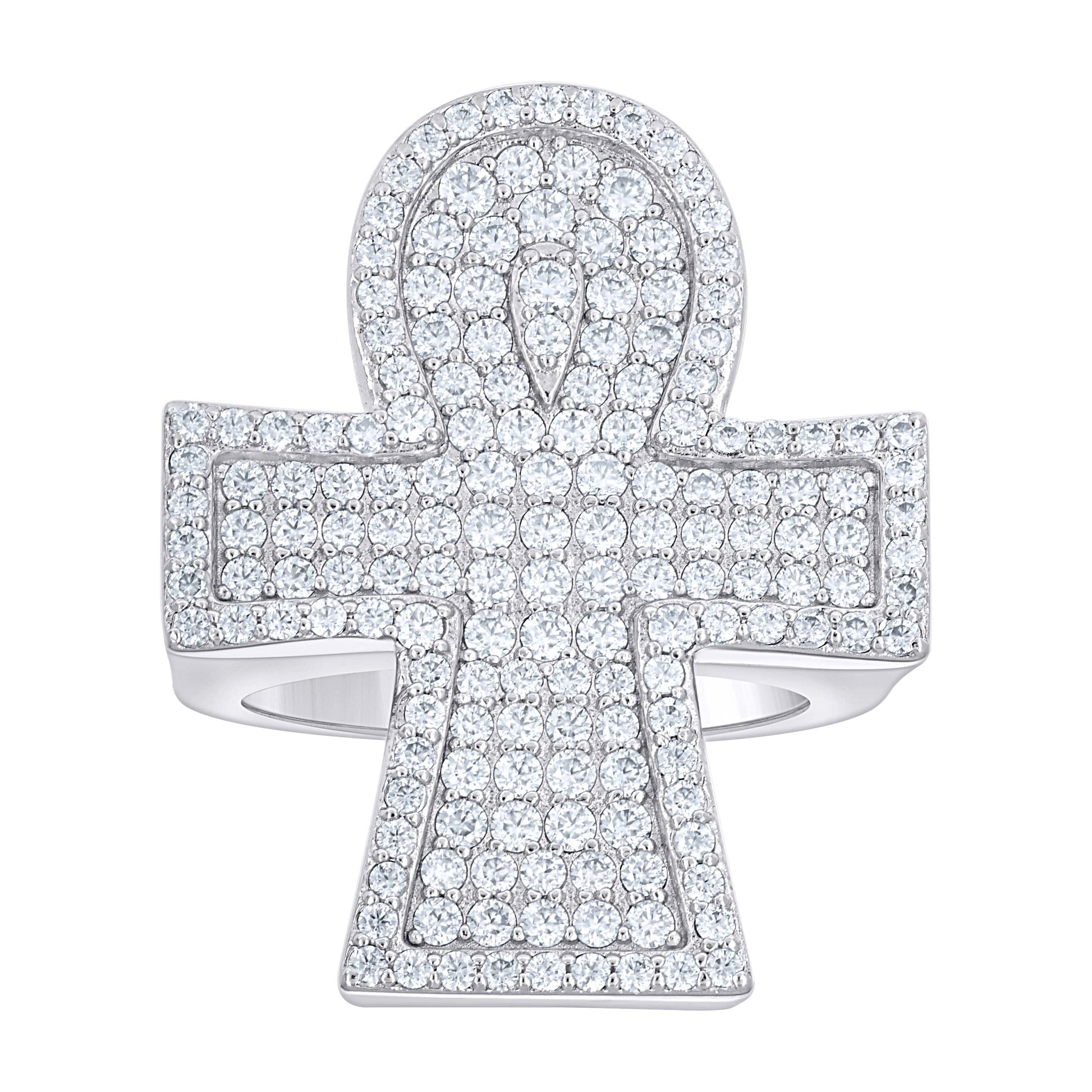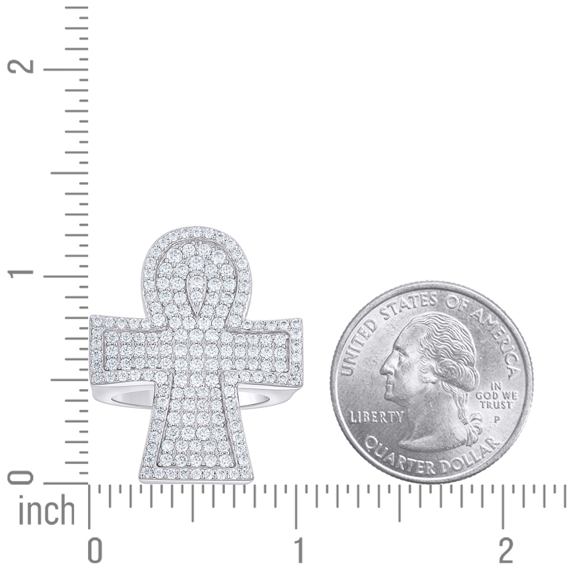 925 Sterling Silver Mens Moissanite Ankh Cross Religious Ring S9