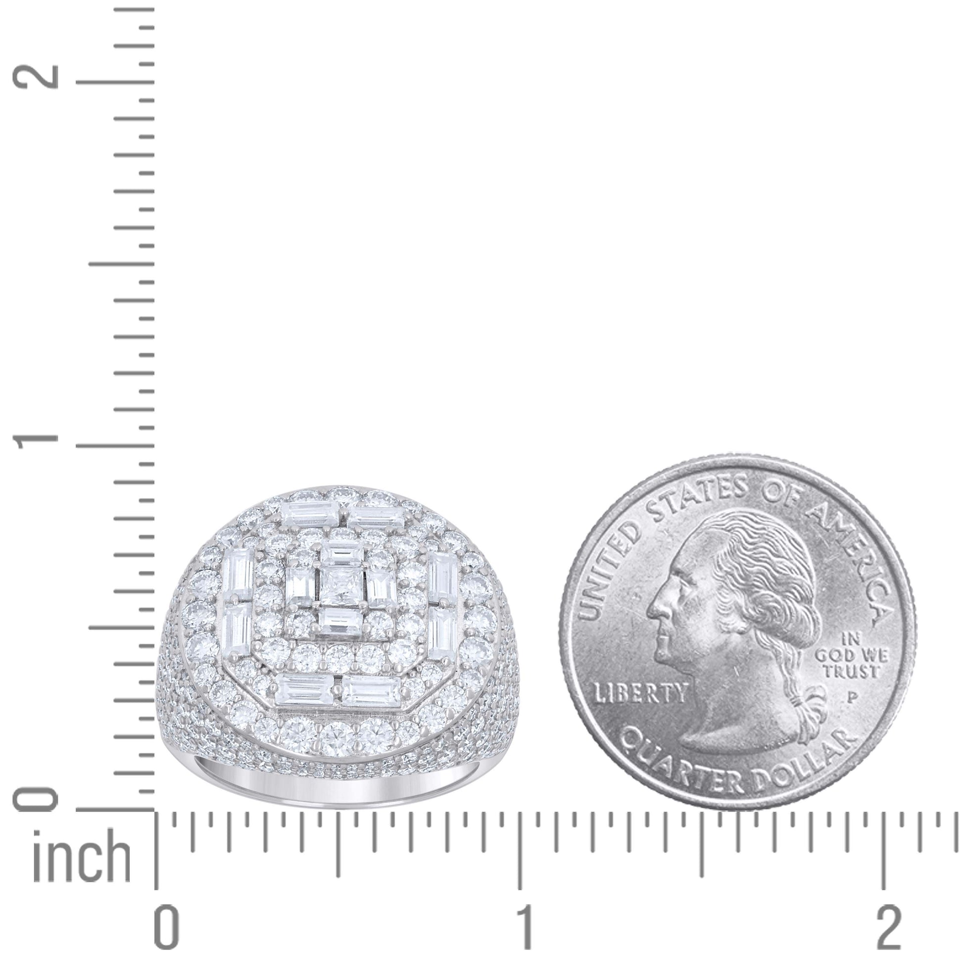 925 Sterling Silver Mens Baguette Round Moissanite Round Head Fashion Ring S9